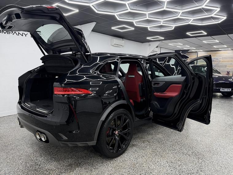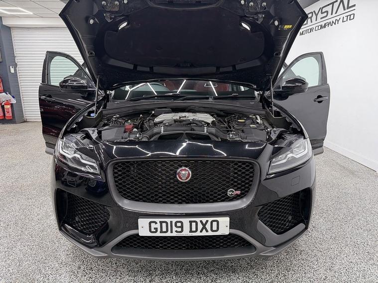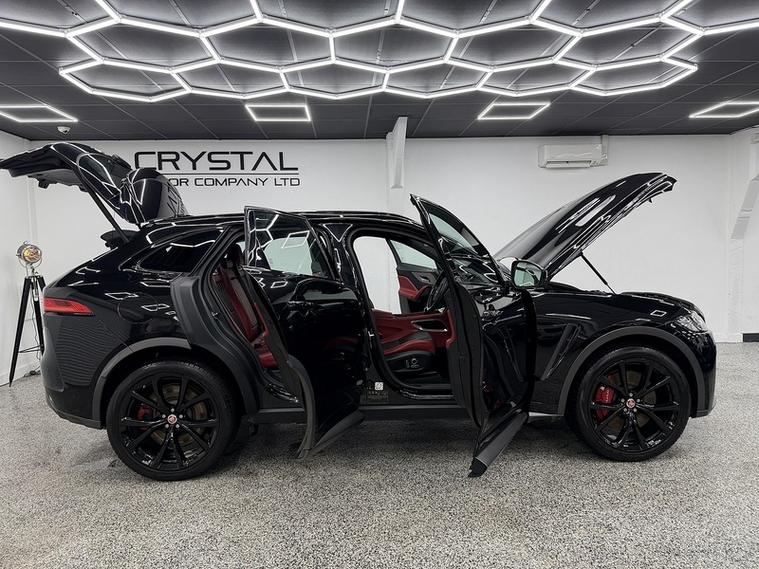 Crystal motor company are delighted to offer for sale this beautifully presented 2019 Jaguar F-PACE 5.0 V8 SVR SUV 5dr Petrol Quickshift AWD Euro 6 (s/s) (550 ps) finished in BLACK. This car comes with TWO KEYS, ONE FORMER KEEPER, SERVICE HISTORY. This car is equipped with 20" ALLOY WHEELS, RED BRAKE CALLIPERS, FRONT AND REAR PARKING SENSORS, REAR REVERSING CAMERA, ELECTRIC REAR TAILGATE, ELECTRIC FOLDING WING MIRRORS, LED HEADLIGHTS, TWO TONE BLACK AND RED LEATHER SEATS, ELECTRIC MEMORY FRONT SEATS, HEATED AND COOLED FRONT SEATS, HEATED REAR SEATS, PADDLE SHIFT, CRUISE CONTROL, HEATED STEERING WHEEL, EXHAUST VALVE CONTROL, MERIDIAN SOUND SYSTEM, ALCANTARA HEADLINING, DAB RADIO, BLUETOOTH AUDIO, BLUETOOTH PHONE CONNECTION, SATNAV, APPLE CARPLAY, ANDROID AUTO. The car is 100% HPi clear. Part exchange and finance are available and all major credit and debit cards accepted. Crystal Motor Company Ltd Used Programme includes a full PDI inside and out, MOT, mileage certificate and a full inside and out valet. You can request a personalised video with attention given to any specifics you would like a better view of and we will be pleased to assist you. Likewise, we offer our customers a free collection service. Our journey began in 1996 with the aim to deliver the best possible customer experience, you will enjoy a completely hassle free approach, no pressure and great prices, values we stand by to this day. Looking to finance your next car? We have over 30 lenders on board to help each customer with their financial circumstance. Every vehicle benefits from a minimum of 3 months warranty with the option to extend to 6/12/24/36 months.