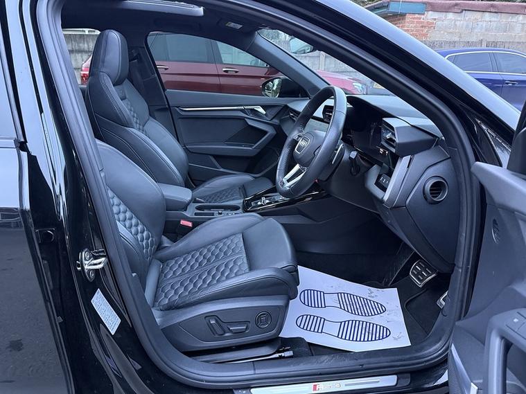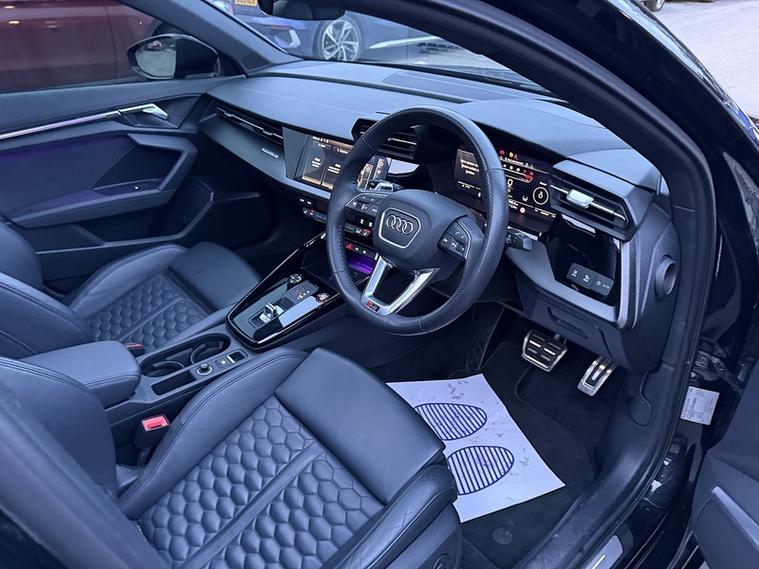 Here we have an Audi RS3 VORSPRUNG finished in stunning Metallic Black.This vehicle is fully loaded with the following spec; Glass Sliding Panoramic Sunroof, RS Sports Exhaust System, Bang & Olufsen premium sound system with 3D sound, Heads up Display, Ambient Lighting Pack, Electrically adjustable & heated front seats, driver's seat and electric mirrors with memory function, Carbon Trim Inlay, RS Adaptive suspension with Audi drive select, Reversing Camera. Privacy glass, Super sport seats, Split folding rear seat 40-20-40, 4-Way lumbar support for the front seats, Carbon trim, Fine nappa leather with honeycomb stitching and RS Embossing, 3 spoke leather multi function steering wheel, Ambient lighting pack, Collision avoidance assistant, Advanced key, Anti-theft alarm system, Auto dimming rear view mirror, Comfort key with SAFELOCK, Exterior mirrors, electrically adjustable, heated and folding, auto dimming on both sides, and memory function, Power operated tailgate, Storage and luggage pack, 12-V outlet in rear seat area, 2-zone climate control system, Audi virtual cockpit with RS Specific display, DAB Radio, Navigation system - High, Adaptive cruise assist with emergency assist, Adaptive cruise control, Audi pre sense front, Driver assistance system, Camera based traffic sign recognition, Heads up display, Hill hold assist, Park assist with parking aid plus, Audi drive select, Progressive steering, RS Specific sport suspension, Darkened Matrix LED headlight with dynamic light design and dynamic turn signal, Digital matrix headlights, Headlight washer system, Black styling pack with black Audi rings logo, Apple car play.Balance of Audi warranty till April 2026, Finance available subject to status, All viewings by appointment only. Full Audi Dealership Service History. =============================================================================== Why not read our AutoTrader reviews to see what our customers think about their experience here and why they choose to buy from us? =============================================================================== Please contact our sales department for the latest finance offers on this vehicle. We have a dedicated team researching our used car prices daily to make sure we offer the best value cars in the market, =============================================================================== To arrange a personal viewing of this amazing car, or if you would like a tailored video to be emailed to you then please contact us. =============================================================================== Please give us a call for directions. Our postcode for Sat Nav direction is B25 8EL • Finance subject to status, T&C's apply. , ===============================================================================