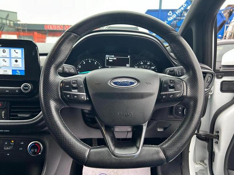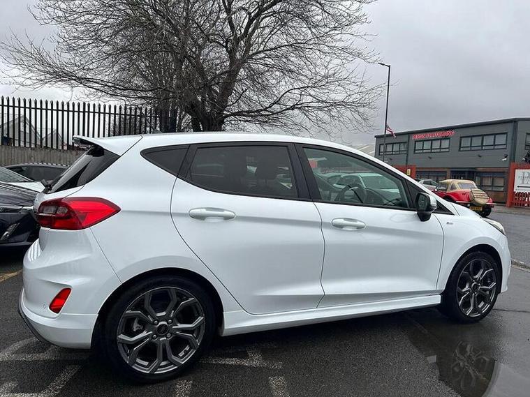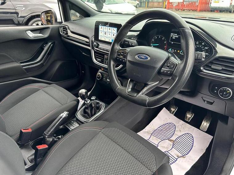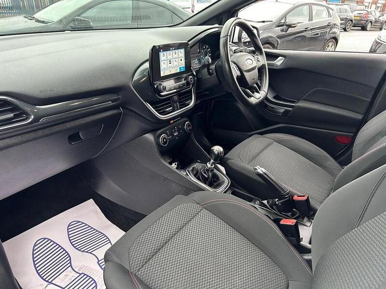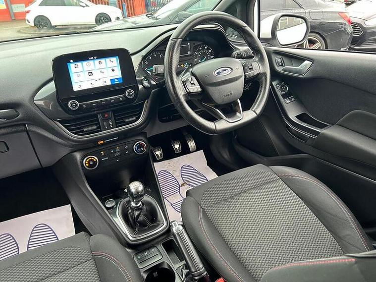 Discover this 2018 Ford Fiesta T ST Line with exceptionally low mileage for its age, having covered just 38011 miles. This Euro 6 compliant model boasts a 1.0 litre petrol engine and comes with a 6 month warranty for your peace of mind. It also includes 12 months MOT provided on purchase, ensuring its road worthiness. Inside, you'll find manual air conditioning, automatic headlights for convenience, and the Ford DAB Radio featuring Ford SYNC3, which seamlessly integrates with both Apple CarPlay and Android Auto.This Fiesta ST Line offers impressive performance and efficiency, indicated by its 0-62mph acceleration time of just 9.0 seconds. Its fuel economy is a notable highlight, achieving up to 55 mpg, and it also benefits from low CO2 emissions, making it a more economical choice compared to similar vehicles. These combined factors demonstrate how this particular Ford Fiesta stands out from the crowd.
