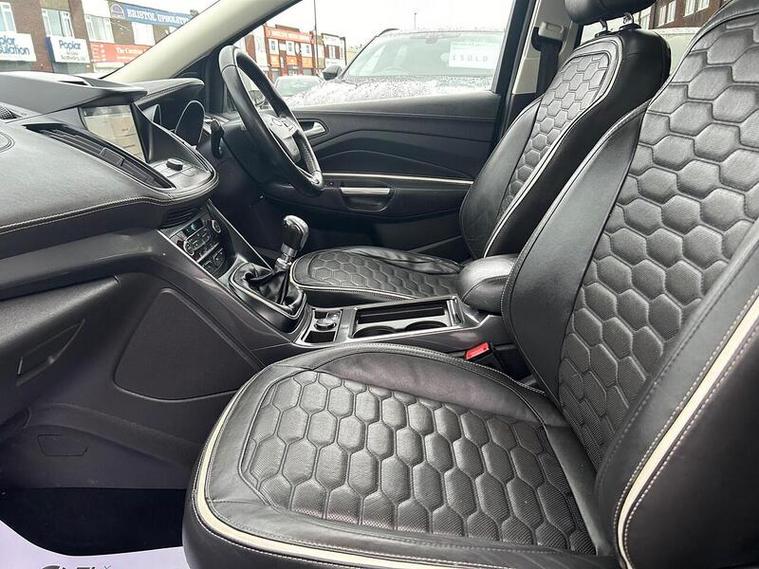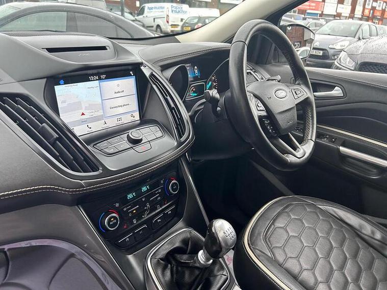 With an MOT valid until August 2026 and only two previous owners, this 2017 Ford Kuga TDCi Vignale presents a compelling proposition. This Euro 6 compliant 2.0L diesel model boasts a low mileage of just 58, 037 miles, a testament to its careful use. The Vignale trim level ensures a premium experience, enhanced by features such as 10 way power adjustable driver's seat with memory function and dual zone electronic automatic climate control. Parking is made simpler with rear parking sensors and a rear view camera, all integrated with the Premium Ford DAB Navigation System featuring Ford SYNC3 and Bluetooth connectivity. A clear vehicle history check and a 6 month warranty provide further peace of mind.This Ford Kuga stands out with its impressive fuel economy, achieving an excellent 60 miles per gallon, which is significantly better than many comparable vehicles. Furthermore, its low CO2 emissions contribute to a more environmentally conscious drive. The partial service history indicates that the vehicle has been maintained, and combined with its low mileage and long MOT, this Kuga offers a well rounded package for any discerning driver.
