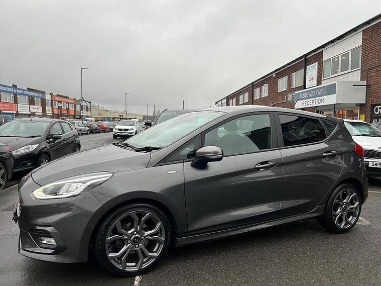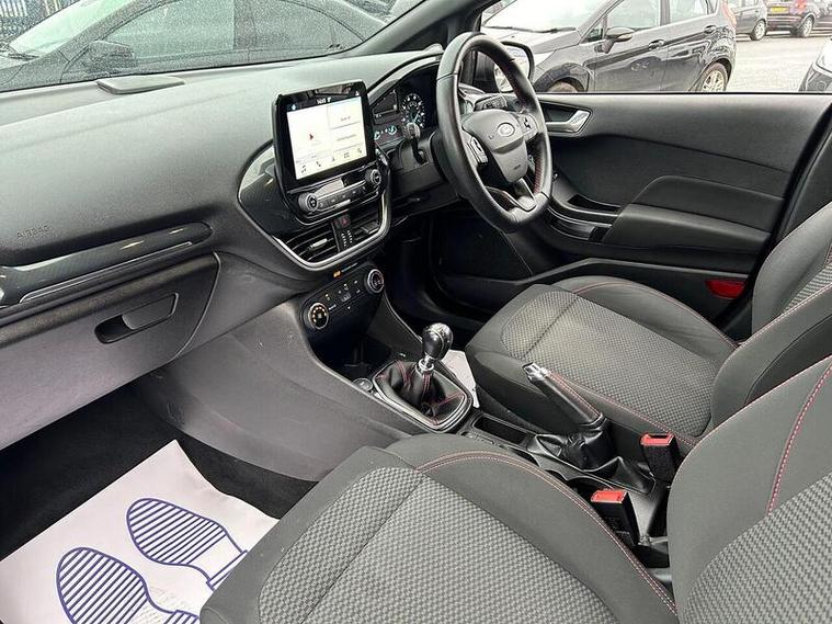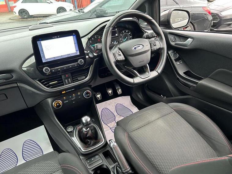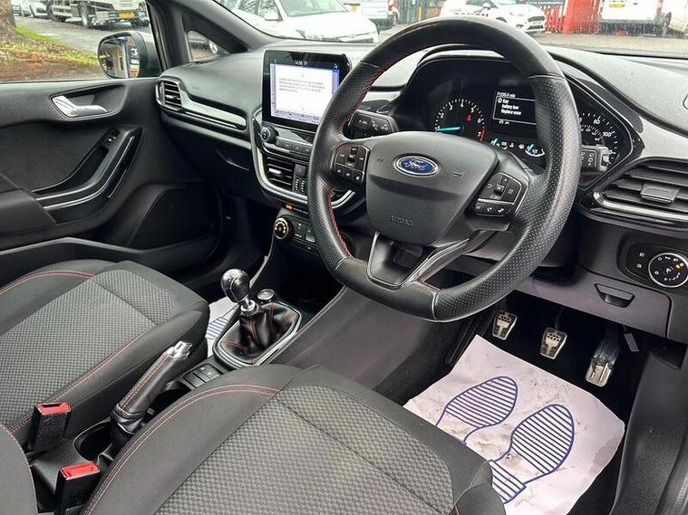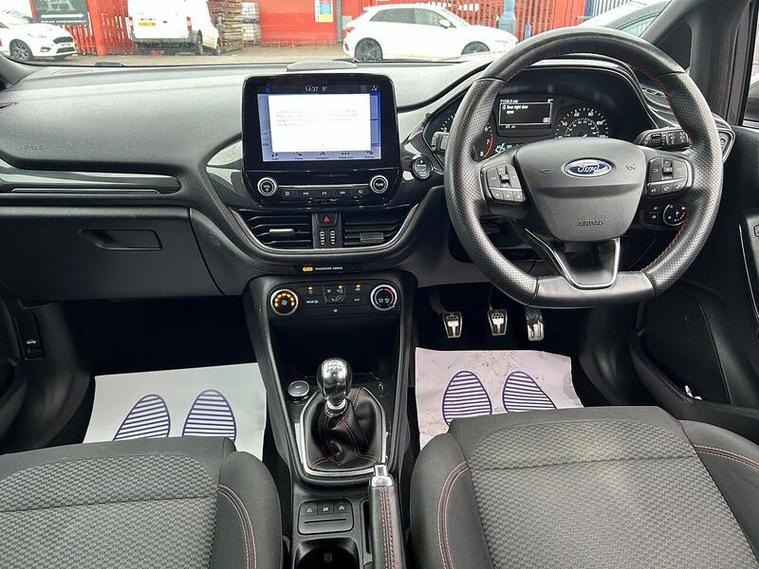 This 2019 Ford Fiesta ST-Line is a superb example, having had only one owner since new. It features a responsive 1.0 litre petrol engine and meets Euro 6 emissions standards, contributing to its low CO2 emissions. The ST-Line trim enhances its sporty appeal, and you can drive with confidence knowing it has an MOT valid until September 2026 and comes with a 6 month warranty. Notable features include the NCAP Pack with automatic headlights, manual air conditioning for your comfort, and the Ford SYNC system with a touchscreen, DAB radio, and seamless integration for Apple CarPlay and Android Auto, keeping you connected and entertained.This Fiesta ST-Line offers an engaging driving experience, reaching 0-62mph in just 10.0 seconds, demonstrating its spirited performance. The inclusion of automatic headlights means they will switch on and off as needed, providing convenience and safety. These aspects, combined with its economical running costs indicated by low CO2 emissions, make this particular Ford Fiesta a compelling choice compared to other vehicles in its class.
