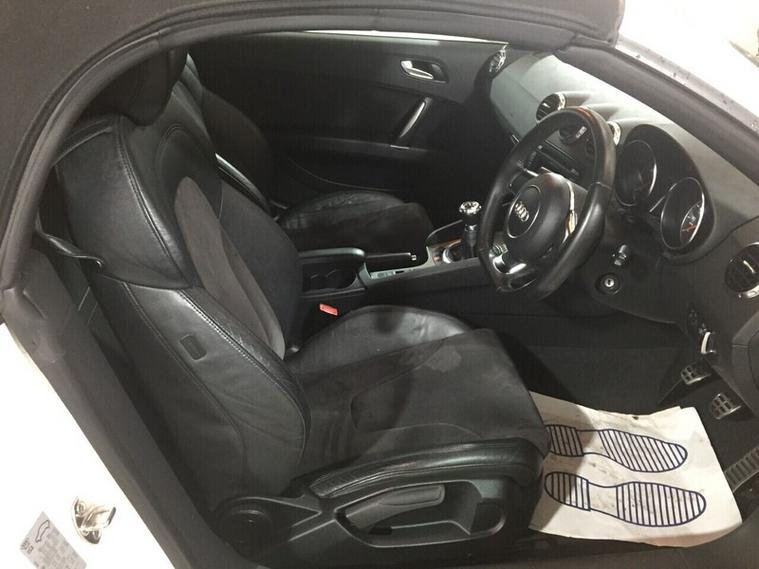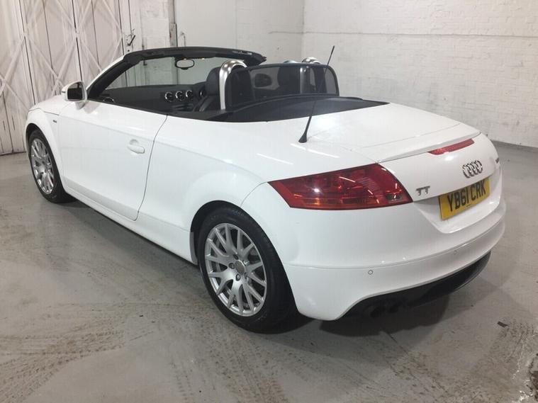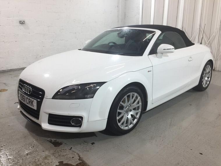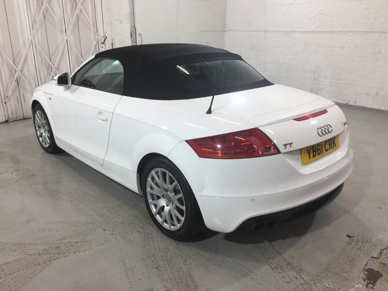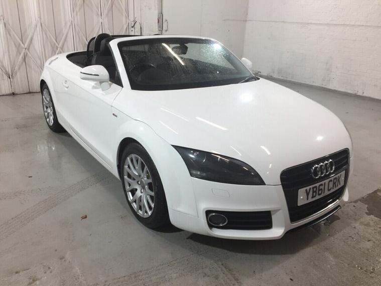 This Audi TT 1.8 TFSI Roadster is a well-presented 2011 model, powered by the 1.8 litre turbocharged petrol engine paired with a 6-speed manual gearbox, offering a combined fuel economy of around 40 mpg. It comes equipped with an Audi Chorus audio system with radio and media functions. The car also benefits from climate control, electric windows, and a flat-bottom leather steering wheel. Finished in white with a black convertible roof, it sits on 17 Inch alloy wheels and features S line styling, giving it a sporty appearance. The vehicle comes with 2 keys and has full service history. This 2-door convertible is ready to be driven away today. Registration: YB61 CRKFirst registered: September 2011, Mileage: 92, 530 miles