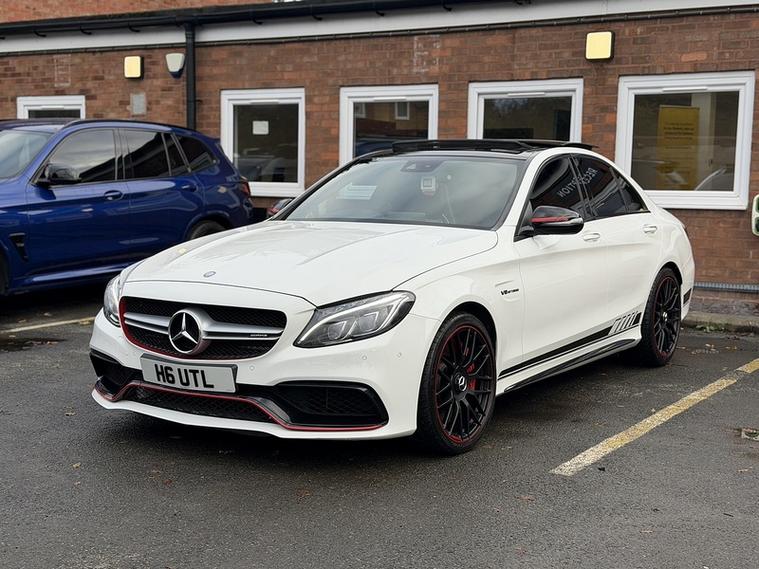 A rare opportunity to own a beautifully kept C63 S AMG Edition 1 — the flagship launch model with all the exclusive styling, performance upgrades and unmistakable AMG presence.Here we have an Mercedes-Benz C63 V8 BiTurbo AMG S Edition 1 Saloon 4.0 Automatic Petrol finished in stunning Metallic White . This vehicle is fully loaded with the following spec; Glass Sliding Panoramic sunroof, Burmeister premium sound system Ambient Lighting Pack, Electrically adjustable & heated front seats, driver's seat and electric mirrors with memory function, Carbon Trim Inlay, Reversing Camera. Privacy glass, Carbon trim, 3 spoke leather multi function steering wheel, Ambient lighting pack, Edition One flat bottom steering wheel, Bucket AMG Seats and much more features. Finance available subject to status, All viewings by appointment only.=============================================================================== Why not read our AutoTrader reviews to see what our customers think about their experience here and why they choose to buy from us? =============================================================================== Please contact our sales department for the latest finance offers on this vehicle. We have a dedicated team researching our used car prices daily to make sure we offer the best value cars in the market, =============================================================================== To arrange a personal viewing of this amazing car, or if you would like a tailored video to be emailed to you then please contact us. =============================================================================== Please give us a call for directions. Our postcode for Sat Nav direction is B25 8EL • Finance subject to status, T&C's apply. , ===============================================================================