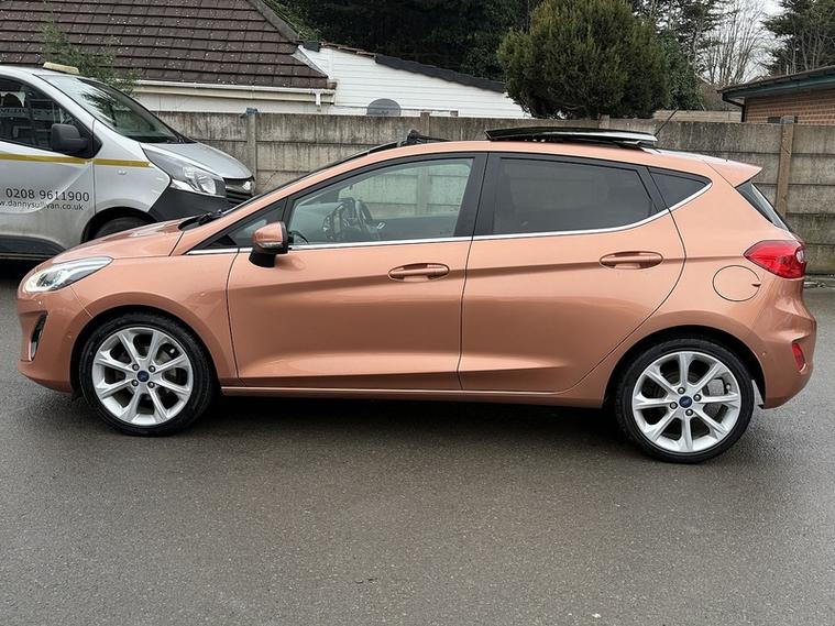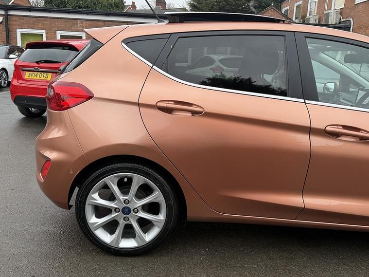 Here we have a Ford Fiesta 1.0 Petrol Automatic Titanium B&O Play finished in Bronze having done 54k miles from new with Full Service History including the last service done less than 50 miles ago. Also comes with a long MOT until January 2027 with no advisories. Also, just had brand new front brake discs + pads fitted.Will come with 3 month warranty and 12 month AA breakdown cover included. Only has 1 Previous Owner and a complete set of 2 Remote Keys.The interior and exterior of the car have been looked after very well, it starts and drives perfectly with no issues at all. Being the top of the range spec this vehicle benefits from Reverse Camera, Front + Rear + Full 360 Sensors, Sliding Panoramic Roof with Tilt, Ford Self-Park Assist, Bang & Olufsen Sound System, Navigation, Apple CarPlay, Android Auto, Ford Connect, In-car Wi-Fi, Automatic Lights, Rear Privacy Glass, Bluetooth, Automatic Climate Control and Aux/USB capability. The car will be sold with extendable Warranty. We also offer Part Exchange / Delivery / Finance, HPI report available on request. Please call us on 01215403191 for further enquiries. ===============================================================================Why not read our AutoTrader reviews to see what our customers think about their experience here and why they choose to buy from us? =============================================================================== Please contact our sales department for the latest finance offers on this vehicle. We have a dedicated team researching our used car prices daily to make sure we offer the best value cars in the market. ===============================================================================To arrange a personal viewing of this amazing car, or if you would like a tailored video to be emailed to you then please contact us. ===============================================================================Please give us a call for directions. Our postcode for Sat Nav direction is B25 8EL • Finance subject to status, T&C's apply.