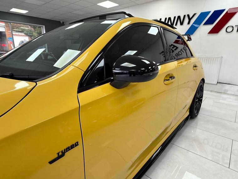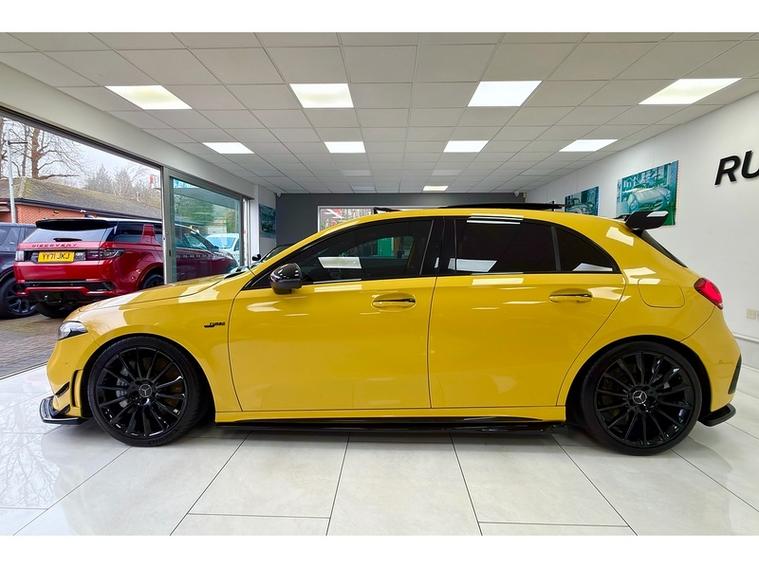 RUNNYMEDE MOTOR COMPANY ARE DELIGHTED TO OFFER OUR STUNNING MERCEDES BENZ A35 AMG 4 MATIC PREMIUM PLUS FINISHED IN SUN YELLOW GLOSS PAINT.3 YEARS EXTENDABLE WARRANTY AVALIBLE. FULL SERVICE HISTORY.BEAUTIFULLY MODIFIED AND UPGRADE, LOWERED SPRINGS, UPGRADED TO 4 EXHAUST TIPS, MAXTON DESIGN FRONT SPLITTER, MAXTON DESIGN SIDE SKIRTS, REAR SIDE SPLITTERS V.1 MERCEDES AMG A 45 S AERO PACK, POSSIBLE STAGE 1 OR 2 REMAP THIS A35 PROVIDES A SUBSTANTIAL INCREASE IN POWER AND TORQUE.SPEC WITH OPTIONS OVER 9K; AMG STYLE PACKAGE, ADVANCED CONNECTIVITY PACKAGE, AMG ADVANCED NAVIGATION PACKAGE, AMG STYLE PACKAGE, DRIVING DISTANCE PACKAGE, PREIMUM PLUS EQUIPMENT LINE, SUSPENTION WITH ADAPTIVE DAMPING SYSTEM, BLACK LEATHER PACK, PANORAMIC ROOF, AMG FRONT SPLITTER, AMG REAR DIFFUSER, AMG SPOILER, SIDE LIVERY, PRIVACY GLASS, AMBIENT LIGHTING, BLUETOOTH, HEATED SEATS, ELECTIC ADJUSTABLE MEMORY SEATS AND MANY MORE, LOOKS AND DRIVES LIKE NEW, FULLY INSPECTED WITH ZERO FAULTS, DRIVE AWAY SAME DAY WITH A HASSLE FREE BUYING EXPERIENCE, RESERVE NOW ON OUR WEBSITE, WE OFFER COMPETITVE FINANCE OP[TIONS, EXTENDABLE WARRANTY PACKAGES AND PART EXCHANGE IS WELCOMED. FOR ANY FURTHER ENQURIES DO NOT HESITATE TO GET IN TOUCH WITH A MEMBER OF OUR SALES TEAM TODAY!