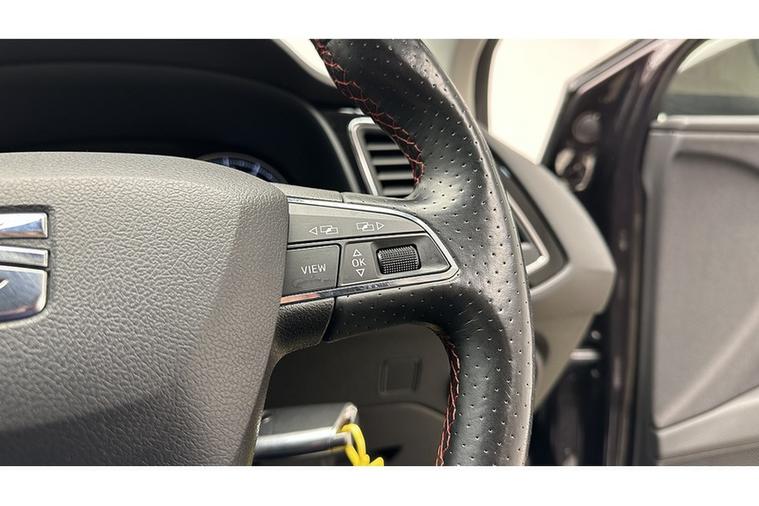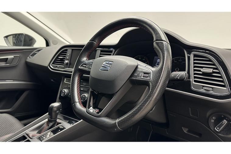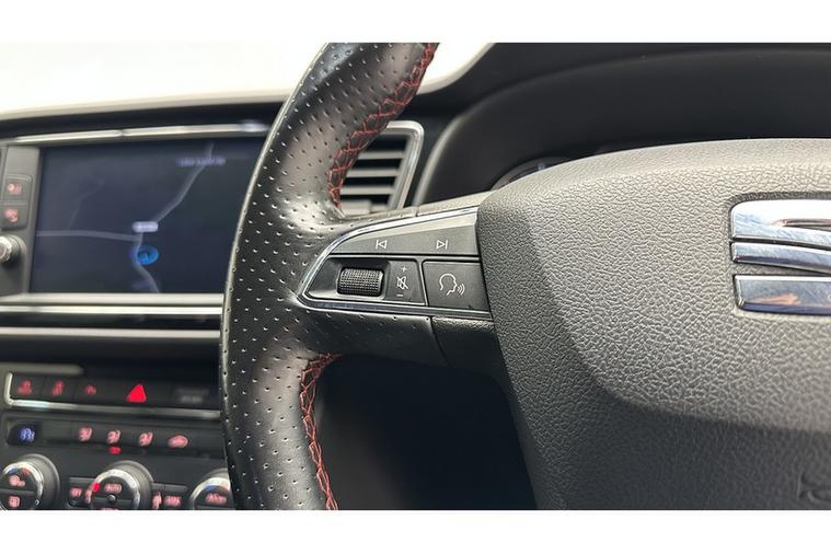 - Steering Wheel - Flat-Bottomed Perforated Leather with Red Stitching and FR Logo