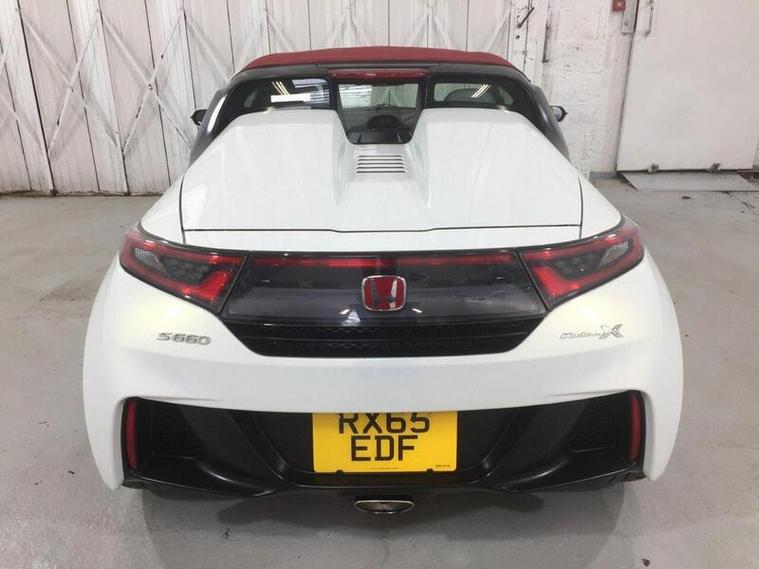 This Honda S660 Alpha is fitted with a lively 660cc petrol engine paired with smooth automatic transmission, delivering an engaging and responsive driving experience in a lightweight mid-engined convertible. Compact, agile and designed for pure driving enjoyment, this S660 is finished in Pearl White with contrasting red fabric roof, this example benefits from grey sports interior trim, multifunction steering wheel with cruise control and paddle shifters, push-button start, sport driving mode, climate control air conditioning, infotainment display, USB connectivity, electric windows and electrically adjustable mirrors. The Alpha model offers sporty styling, sculpted bodywork, sharp LED headlights and distinctive alloy wheels. Supplied with 2 keys and comes with service history and ready to drive away today. Registration: RX65 EDF.First registered December 2015, Mileage 65, 660 miles.