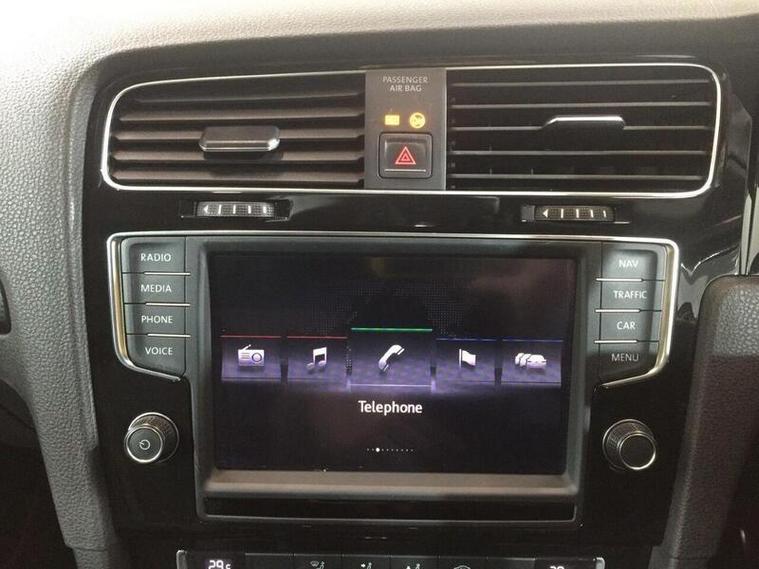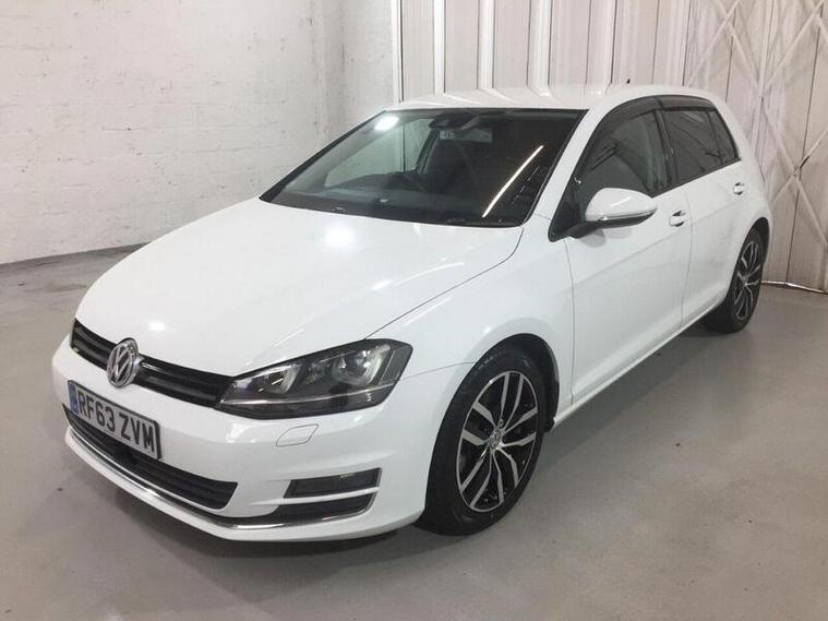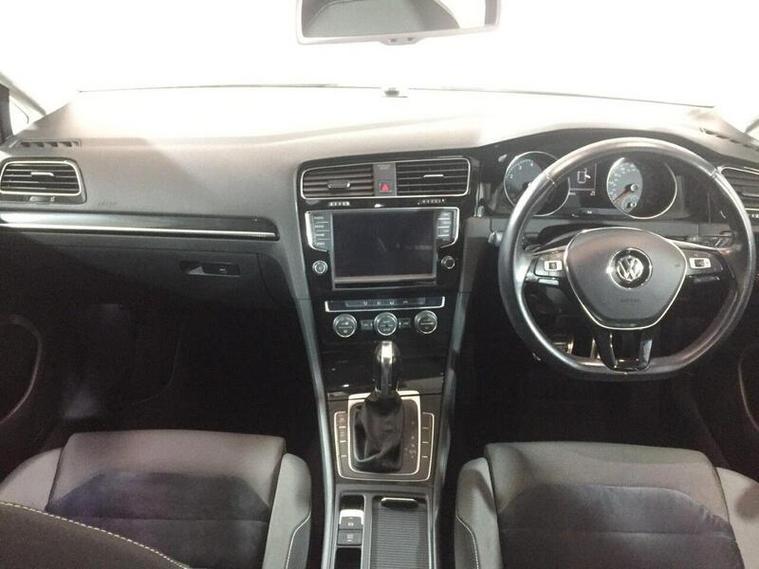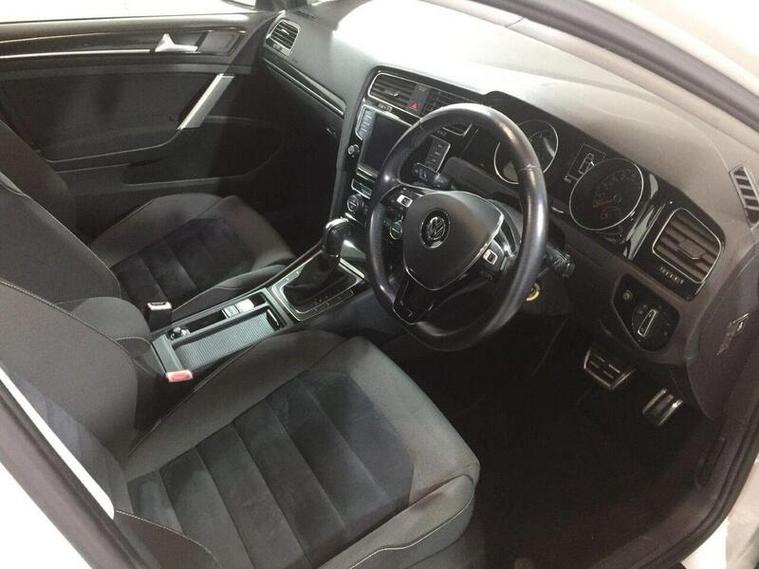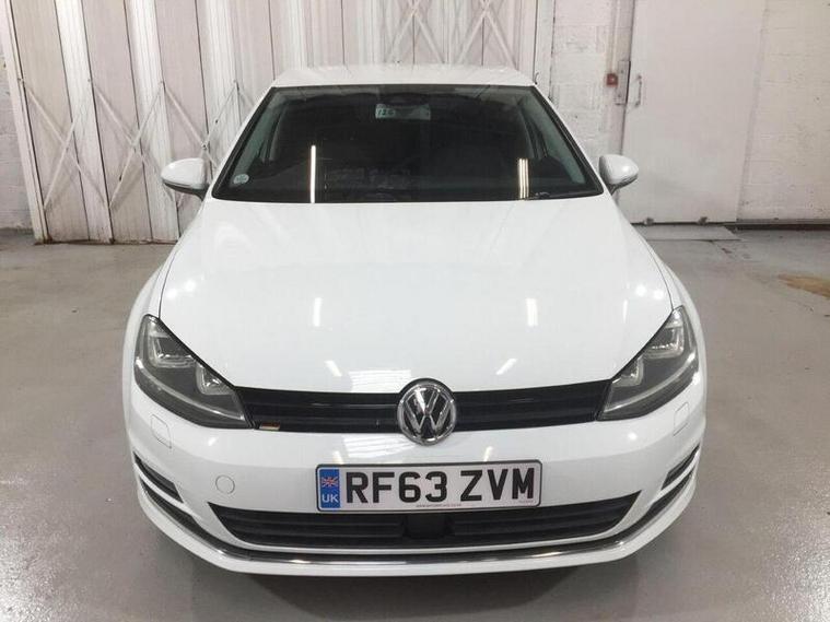 This Volkswagen Golf GT it is fitted with the 140 horsepower 1.4 litre petrol engine and 7 speed automatic transmission for combined economy of 60 MPG. Finshed in white, it benefits from a luxury cloth and Alcantara interior, dual-zone climate control air conditioning, touch screen multi-media interface with FM radio, CD player, Bluetooth handsfree telephone and audio streaming and colour reversing camera, front and rear Park Distance Control, multi-function leather steering wheel with paddle shifters, adaptive cruise control (ACC) and speed limiter. The car also benefits from front and rear electric windows, heated electric power-fold door mirrors, remote central door locking and immobiliser with two full function keys, rear ISOFIX child seat points and 17-inch alloy wheels. There is a large boot with parcel shelf, split folding rear seats. Presented in first class condition inside and out with service history and BIMTA mileage verification guarantee. Registration: RF63 ZVM.First registered February 2014, Mileage: 50, 000 miles