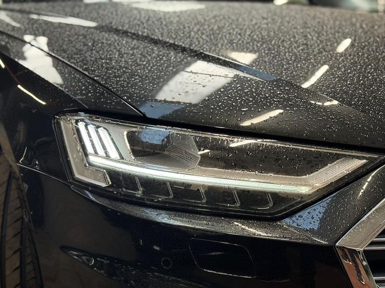 The Vesuvius Grey metallic paintwork perfectly complements the A8’s elegant styling, while the cabin is a true showcase of Audi craftsmanship, refinement, and comfort.