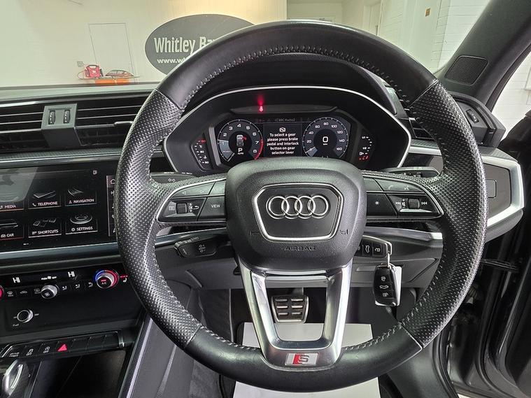 - 3-Spoke Leather Multi-Function Steering Wheel - S Badging and Grips in Perforated Leather with Contrast Stitching