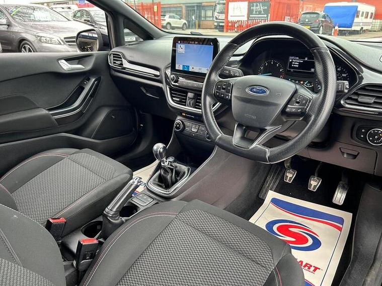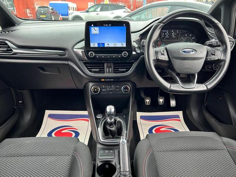 With an MOT valid until December 2026 and a full service history, this 2017 Ford Fiesta T ST-Line offers excellent peace of mind. This Euro 6 compliant model features a 1.0L petrol engine and has covered a low mileage of just 51, 877 miles for its age. It comes with a clear vehicle history check and benefits from a 6 month warranty. Inside, you'll find manual air conditioning, automatic on-off headlights, and the Ford DAB Radio with Ford SYNC3, which includes Apple CarPlay and Android Auto. The NCAP Pack further enhances safety features.This Ford Fiesta T ST-Line stands out with its impressive fuel economy, achieving up to 63 mpg, and low CO2 emissions, making it an economical choice. Its acceleration from 0-62mph in just 9.0 seconds indicates it performs better than many similar vehicles in its class. The last service was completed on 2025-12-12 at 49, 031 miles, demonstrating its well maintained condition.