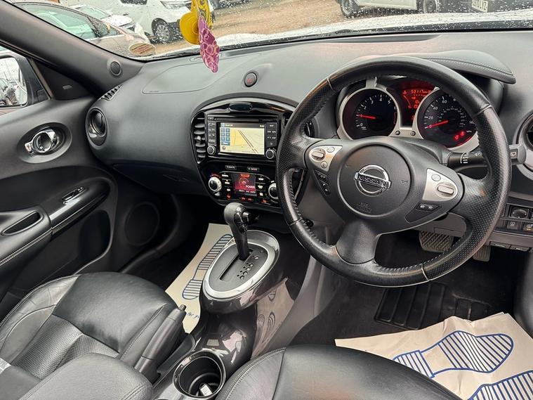 Rare Nissan Juke 1.6 Tekna XTRON Euro 5 5dr – High Specification & Low MilesVIEWING BY APPOINTMENT ONLY!!!Looking for something a little special? This very rare Nissan Juke 1.6 Tekna XTRON Euro 5 5dr is a fantastic example with just 53, 000 miles, backed up by a full service history for complete peace of mind.This well-cared-for car passed its MOT in February with a clean bill of health and no advisories, showing just how well it has been maintained.High Tekna Specification Includes:Being the top-spec Tekna model, this Juke comes loaded with great features designed for comfort, convenience and family-friendly driving:XTRON automatic gearbox – smooth and easy to driveSatellite navigation systemReversing cameraHeated leather seatsKeyless entry and push-button startBluetooth handsfree and audio streamingCruise control with speed limiterClimate control air conditioningElectric folding mirrorsAlloy wheelsFront and rear electric windowsMulti-function steering wheelUSB and AUX connectivityISOFIX child seat mounting pointsThis Tekna model offers comfort, practicality and style — making it a perfect family-friendly car that’s economical, reliable and fun to drive whether you're commuting, shopping or heading out on a family trip.For added reassurance, like all of our vehicles this Juke goes through a vigorous RAC-approved inspection, carried out by one of our highly trained technicians. The car will also be serviced again in line with Nissan’s recommendations before it leaves us, so it’s ready for its new owner to drive away with confidence.Why Buy From Us?Only 53, 000 genuine milesFull service historyFresh service before collectionMOT passed February – no advisoriesRAC approved inspectionLow-rate finance available from 8.9% APRFriendly, knowledgeable teamWe’re proud of our 5-star Google reviews, which reflect the care and attention we give every customer. Simply search our business name on Google to see what our customers say about us.