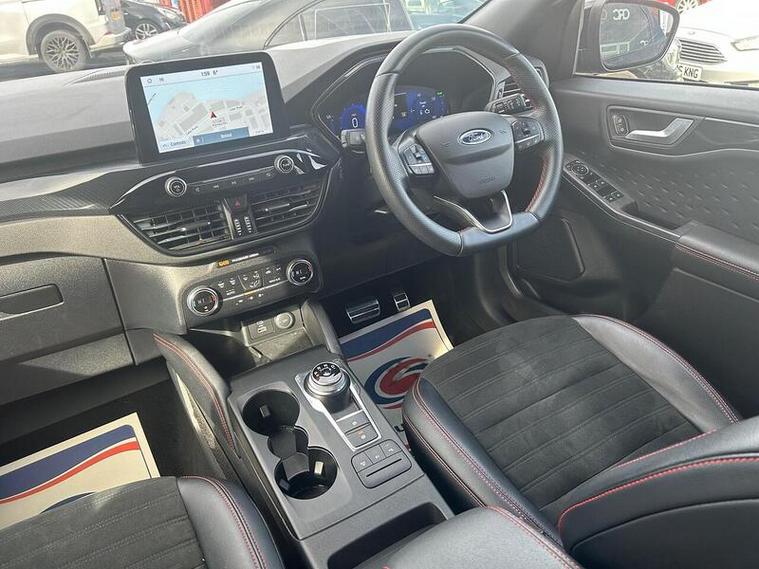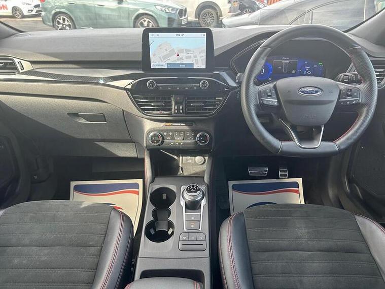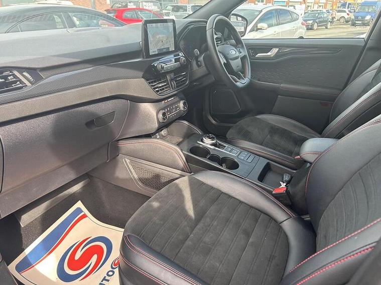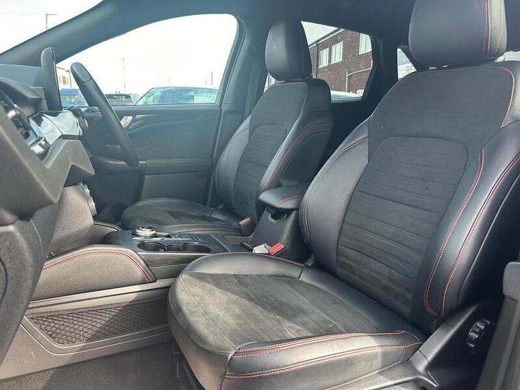 This 2021 Ford Kuga ST-Line offers excellent peace of mind with its MOT valid until September 2026 and a clear vehicle history check. This petrol plug-in hybrid model, boasting a 2.5L engine and Euro 6 emissions, comes with a 6 month warranty for added reassurance. While it has partial service history, the comprehensive provenance information indicates a well maintained vehicle.The ST-Line trim level enhances the Kuga's appeal, and this particular model is equipped with the Technology Pack, featuring a Head Up Display and LED headlights that automatically switch on and off. Parking is made simpler with front and rear parking sensors and parking assistance. Inside, you can enjoy the premium Bang and Olufsen sound system and convenient wireless phone charging. These features, combined with its low insurance group, highlight how this Ford Kuga stands out from other vehicles in its class.
