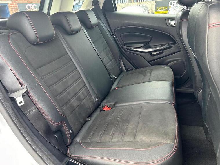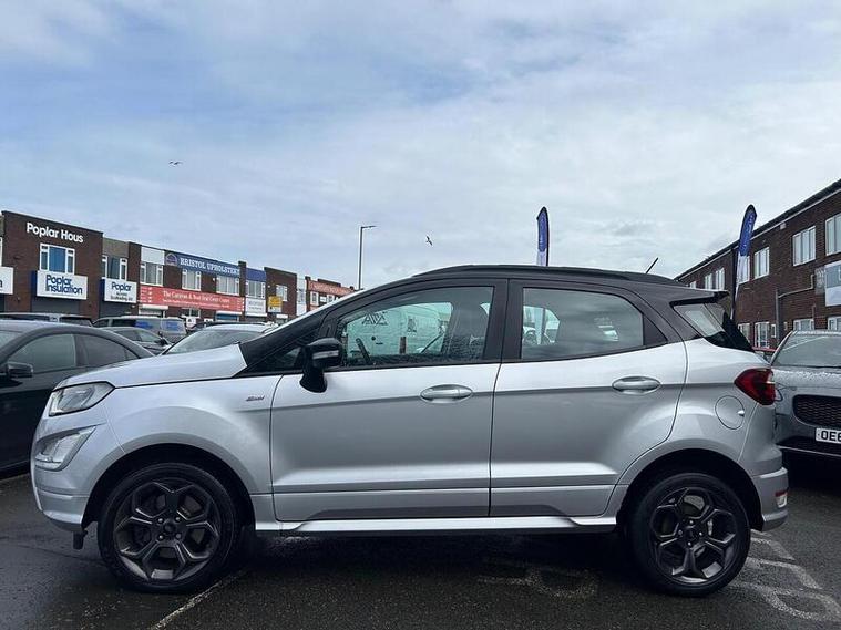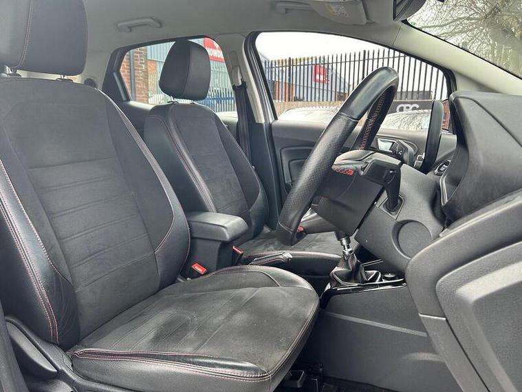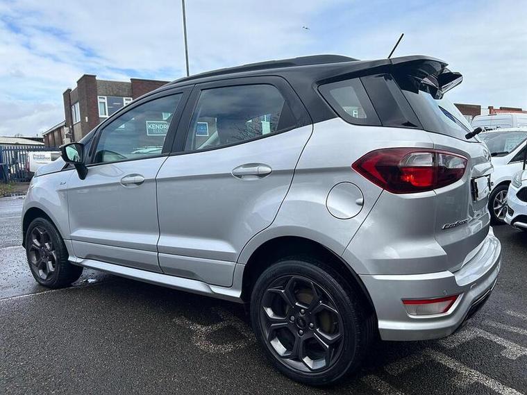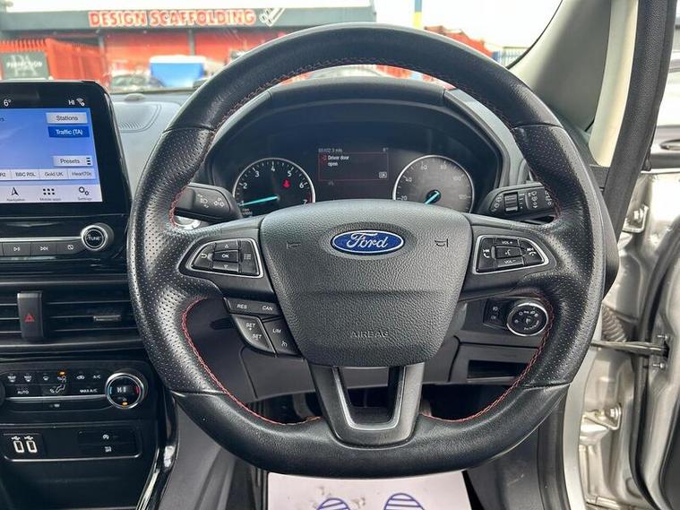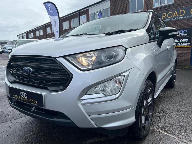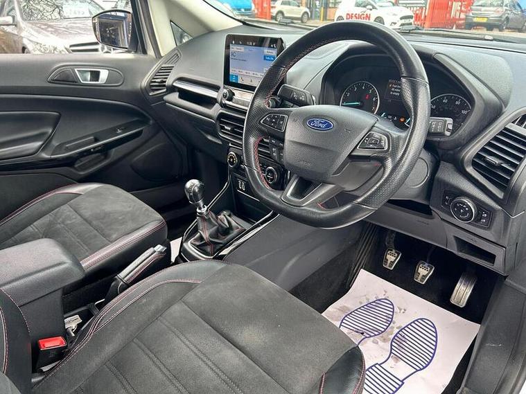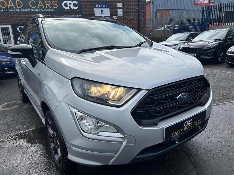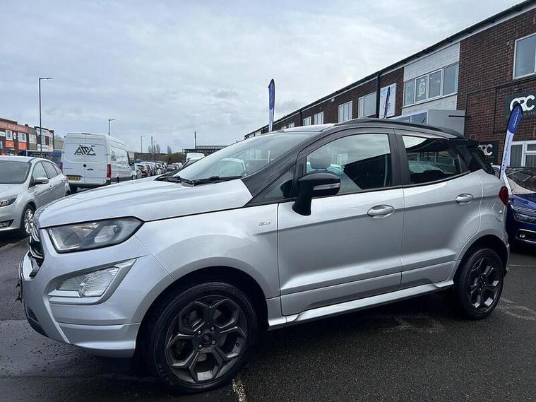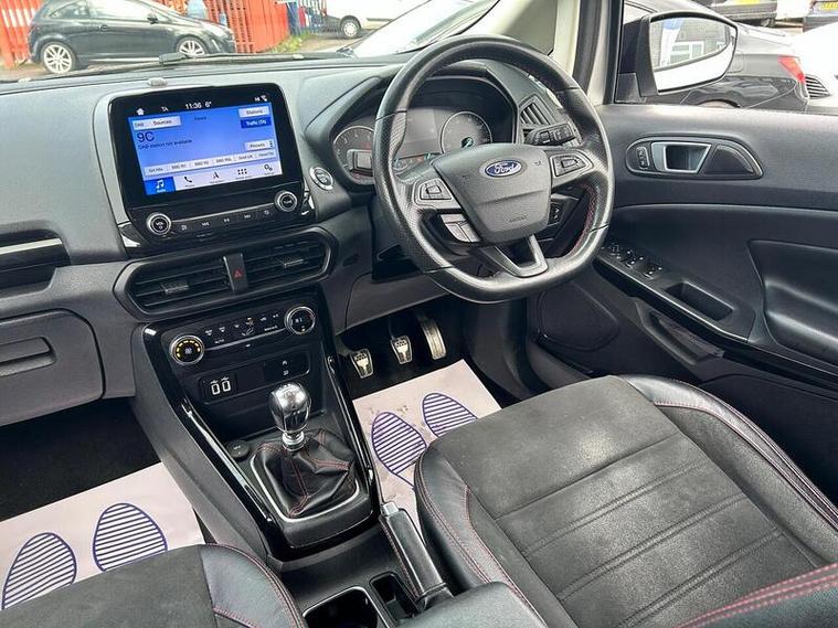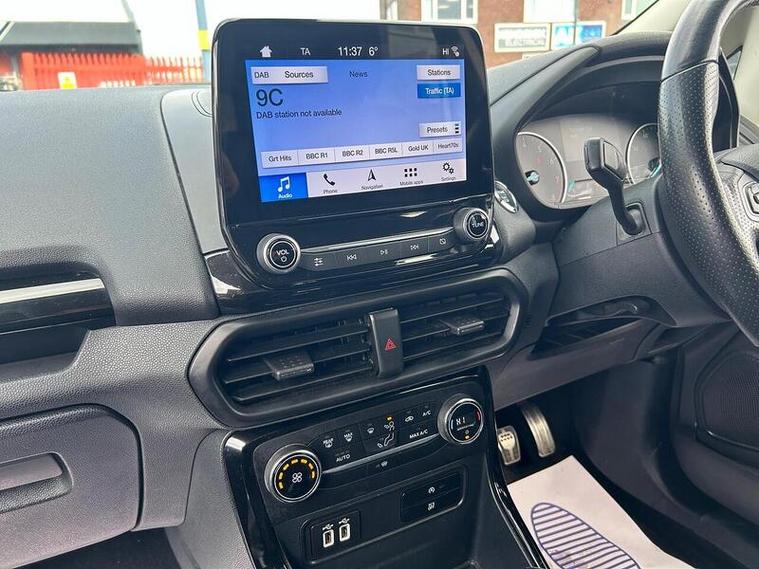 Boasting a full service history and an MOT valid until February 2027, this 2019 Ford EcoSport T ST-Line presents a well maintained example. Powered by a 1.0L Petrol Engine and meeting Euro 6 emissions standards, this ST-Line trim vehicle comes with a clear vehicle history check and a 6 month warranty for your peace of mind. Inside, you'll find a Comfort Pack with heated seats and a heated steering wheel, alongside a Rear View Camera Pack for easier parking. Enjoy the convenience of Electronic Automatic Temperature Control for climate control, automatic headlights, and the Ford SYNC 3 Navigation system with an 8in touchscreen, compatible with Android Auto and Apple CarPlay.This Ford EcoSport offers an impressive fuel economy of 47 mpg, a highlight that demonstrates its efficiency compared to similar vehicles. Its low CO2 emissions further contribute to its economical running costs. With its comprehensive service history and long MOT, this EcoSport is ready for its next owner.