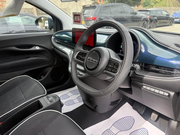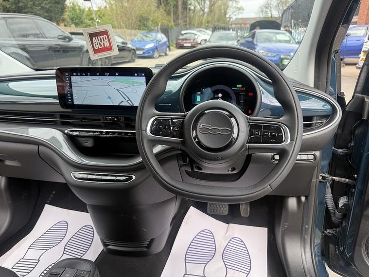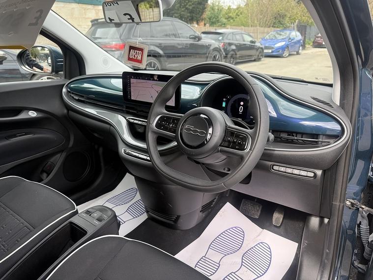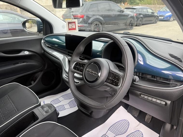 Here we have a Category S Fiat 500e finished in Pearlescent Ocean Green having done only 4, 867 miles from new.