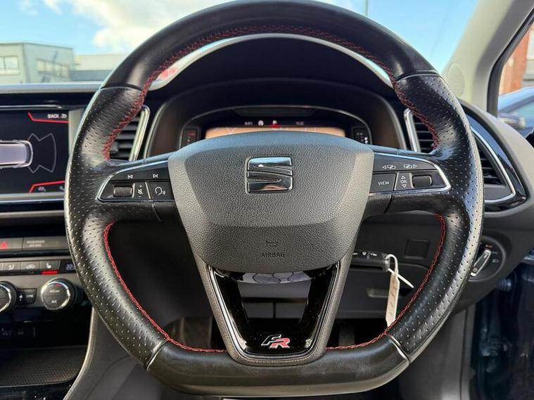 - Steering Wheel - Flat-Bottomed Perforated Leather with Red Stitching and FR Logo
