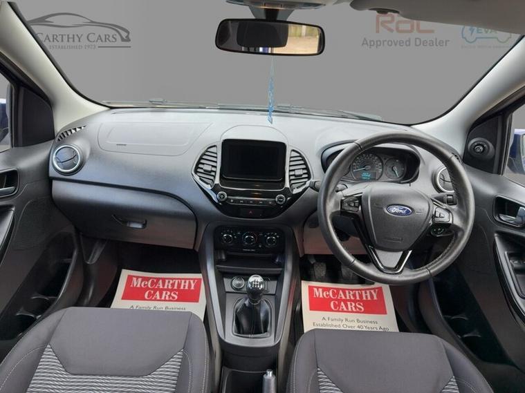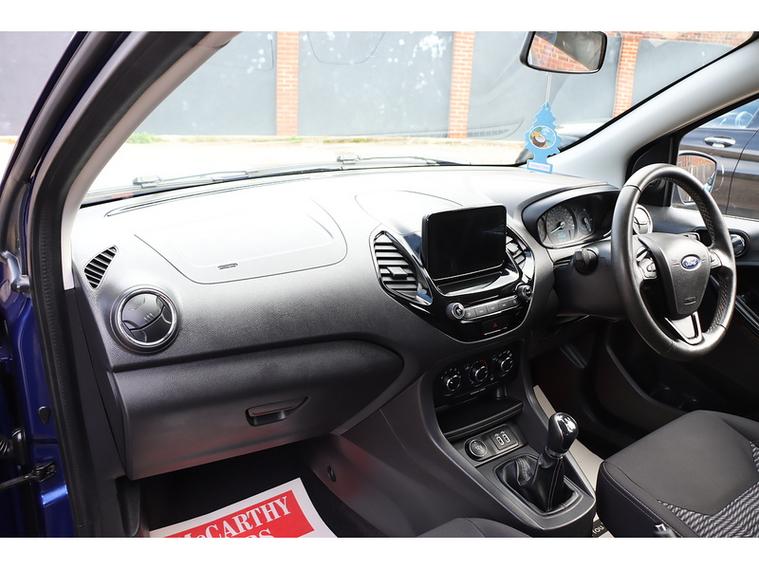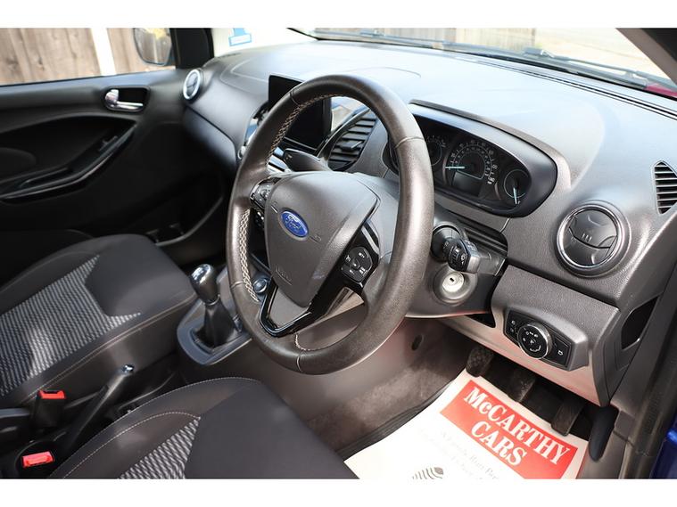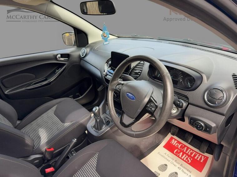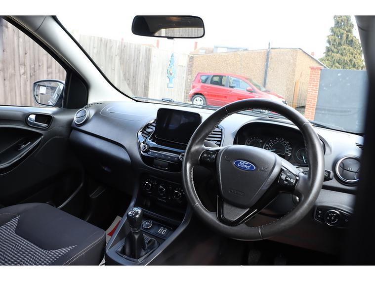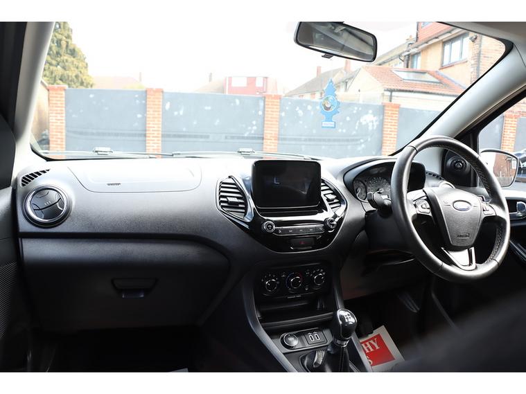 The interior of this Ford is equipped with a range of features including cruise control, Ford SYNC 3 DAB radio with touchscreen, manual air conditioning, and leather steering wheel with remote audio controls. Safety features such as airbags, ABS, traction control, and tyre pressure monitoring system ensure peace of mind while on the road.