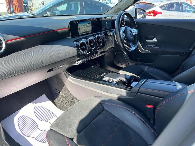 This 2019 Mercedes Benz A Class A180d AMG Line offers a refined driving experience with its Euro 6 compliant 1.5 litre diesel engine. As an AMG Line model, it boasts a sporty aesthetic and comes equipped with LED High Performance Headlamps featuring integrated LED Daytime Running Lights, complemented by Headlamp Assist for automatic activation. Parking is made simpler with a 180 degree view reversing camera, and you can stay connected and comfortable thanks to the dual Bluetooth interface with two USB Type C ports and THERMOTRONIC luxury automatic climate control with a two zone display.