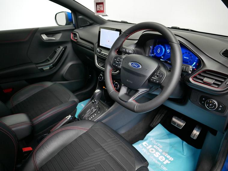 Our 2021 Ford Puma ST-Line X looks stunning in Metallic Desert Island Blue and has just One Owner from New. The features list includes Apple Carplay, Satellite Navigation, DAB, Bluetooth and Rear Parking Sensors. The car passed its AA Inspection with flying colours, and the next MOT is not due until 24/03/2027. The Ford 24 month Services have been completed at the following mileages: