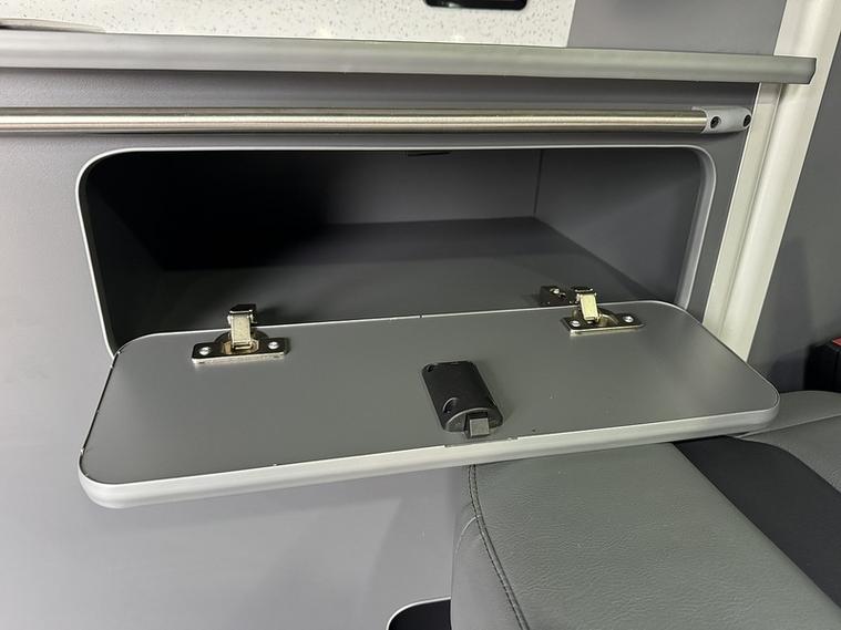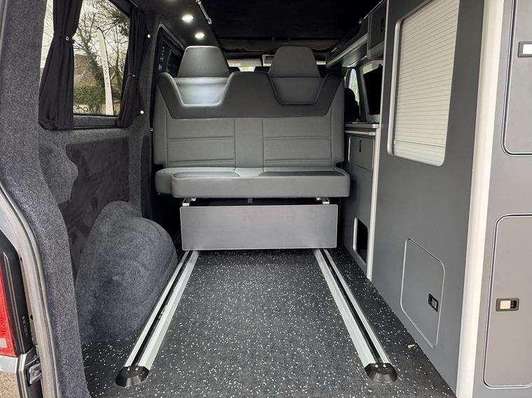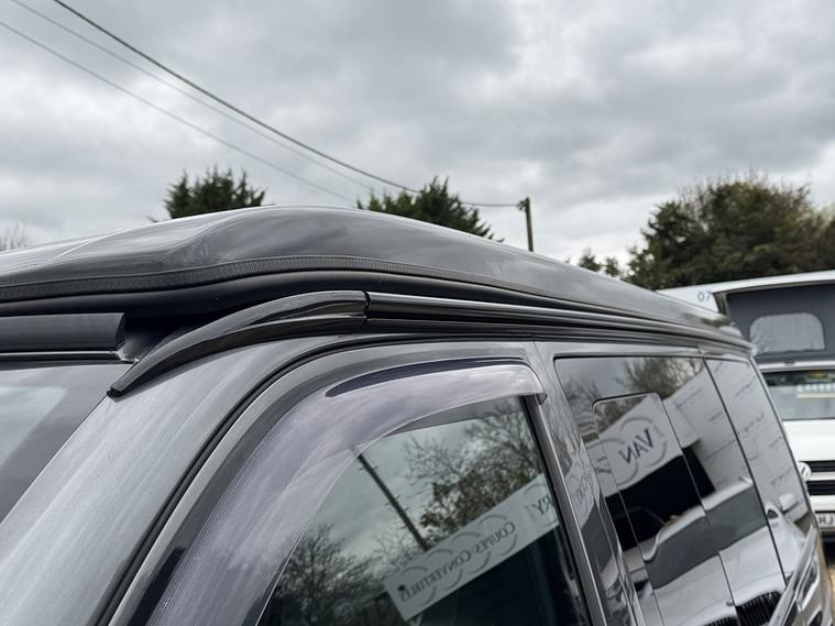 Specification: M1 Tested 2 Seat Rail Bed, Awning rail, M1 tested Pop top Scenic roof, Diesel Heater, 100w Solar panel, Gas and Electrical Certified sign off, Secure gas locker bottle storage for Blue 904, Double hob, Sink with 12v water pump and water storage, Mains Electrical hook up, Leisure battery with charging from mains hook up and vehicle battery, 2x 240v plug sockets when on hook up. LED lighting, 12v Fridge/Freezer, Curtains, Foldable table, Reversing Camera , Electric sliding doors, 20" Alloys, Trapezoid side bars, Tail gate, Towbar..Air conditioning, Apple Carplay/Android auto, DISCOVER Navigation, Soft close Tailgate, DAB radio, USB input Stop/Start, Heated Front screen, Auto lights, Auto dimming rear view mirror, Front and Rear parking sensors.