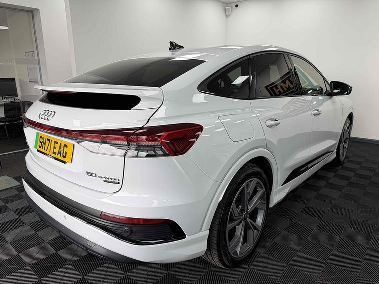We Are Pleased To Offer This 2021 Audi Q4 50 Edition 1 Sportback Quattro. Specification Includes: 2 Year Warranty Only £250 - Comfort & Sound Pack - Virtual Cockpit - Reverse Camera - Front & Rear Parking Sensors - Heated Front Seats - Sonos Sound - Apple & Android CarPlay - Cruise Control - LED Headlights - DAB Radio - Bluetooth Telephone & Audio - Air Conditioning - Rain Sensor & Auto Headlights - Audi Service History - Supplied With A New MOT.