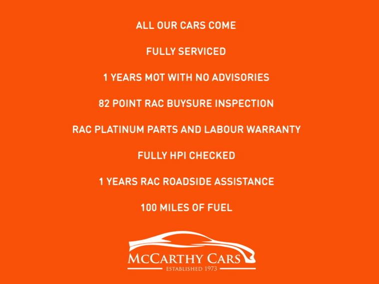 Every Vehicle is Subjected To a Rigorous RAC Approved 82 Point Buysure Inspection and is supplied Fully Serviced With a RAC Platinum Parts and Labour Warranty, 1 Years MOT, 12 Months RAC Roadside Assistance including and HPI Checked, Admin Fee May Apply, 4 Years RAC Platinum Parts and Labour Warranty Available, Over 200 Cars in Stock, Finance Available, No Deposit Required, Part Exchange Available. McCarthy Cars Are RAC Approved and Highly Recommended By Them, Have Complete Peace Of Mind With The McCarthy Cars and RAC Buysure Programme.