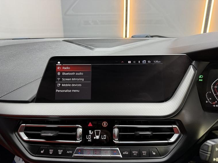 Technology is at the forefront with BMW's iDrive system on a vibrant 10.25-inch touchscreen, including built-in navigation, DAB radio, wireless Apple CarPlay and Android Auto, Bluetooth connectivity, and a digital instrument cluster for intuitive control. Safety is enhanced by a suite of advanced aids, such as autonomous emergency braking, lane departure warning, front and rear parking sensors with a reversing camera, speed limit assist, and multiple airbags for peace of mind on every drive. Comfort features include dual-zone climate control, ambient lighting with multiple colour options, keyless entry and start, heated front seats, and adaptive LED headlights for superior visibility in all conditions.