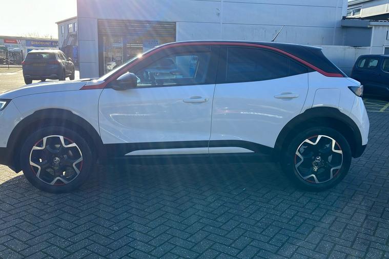 Presenting a 2020 Vauxhall Mokka SRi Premium in striking white, first registered in March 2022 and with only one previous keeper. This automatic SUV combines eye-catching style with daily practicality, featuring a sporty look accentuated by 18-inch alloy wheels with red accents and a contrasting black roof. Its 1.2 turbo petrol engine delivers enjoyable performance with 128 horsepower, accelerating from 0 to 62 mph in just 9.2 seconds and reaching a maximum speed of 124 mph. The cabin seats five in comfort and offers flexible boot space, expanding from 350 to 1105 litres as needed. With a combined fuel efficiency of 47.9 mpg, its designed to keep running costs down. This model meets Euro 6 standards, making it ULEZ compliant for driving in London and other low-emission zones. A fantastic choice for those seeking a stylish, efficient, and versatile used SUV.