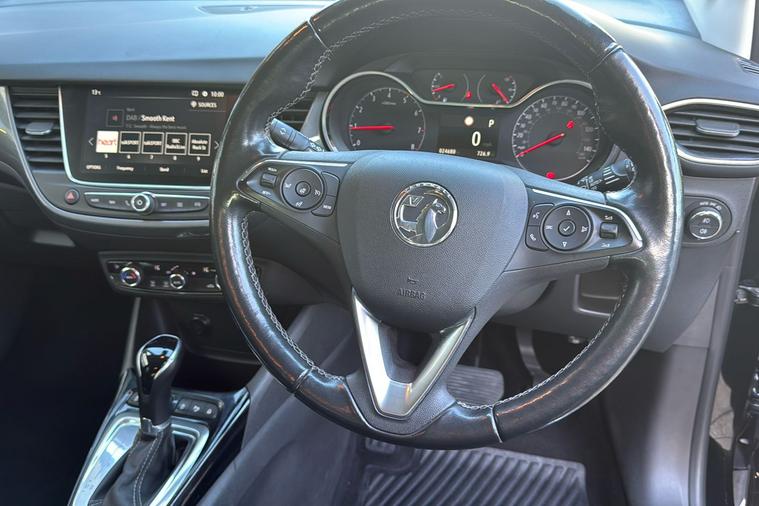 Experience versatility with this used Vauxhall Crossland Ultimate Nav, registered in September 2021. Presented in striking black, this five-door SUV comfortably accommodates five passengers and offers a generous boot space of up to 1, 255 litres with the seats folded. Powered by a responsive 1.2-litre turbo petrol engine paired with a smooth automatic gearbox, it delivers 128 bhp, acceleration from 0-62 mph in just 9.9 seconds, and a combined efficiency of 46.3 mpg. Enjoy the assurance of Euro 6 emissions standards, making it suitable for Ultra Low Emission Zone (ULEZ) driving. Features such as dual zone climate control, panoramic rear view camera, advanced multimedia navigation, heated steering wheel, and ergonomic AGR-approved front seats enhance every journey. With only one previous keeper, this Crossland brings peace of mind and practicality, perfect for city or motorway use.