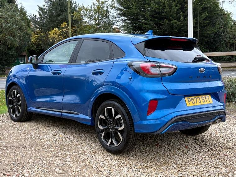 This 2023 Ford Puma ST-Line X offers exceptional value with its remarkably low mileage of just 13, 466 miles and a full service history. This Euro 6 compliant 1.0L Petrol Hybrid model combines efficiency with performance, boasting an impressive fuel economy of 51 mpg. The ST-Line X trim level ensures a premium experience, featuring rear parking sensors for easier manoeuvring and a sophisticated B&O Premium Audio System integrated with Ford SYNC 3 Navigation. This system seamlessly connects with Android Auto and Apple CarPlay, allowing for effortless access to your favourite apps and music via Bluetooth.Further enhancing your driving pleasure, this Puma includes a convenient wireless charging pad and electronic air temperature control for a comfortable cabin environment. The low CO2 emissions are a testament to its modern hybrid technology. For those who appreciate spirited driving, the 0-62mph acceleration in just 8.9 seconds demonstrates its responsive nature. These highlights collectively indicate that this Ford Puma ST-Line X provides a superior driving experience compared to other vehicles in its class.