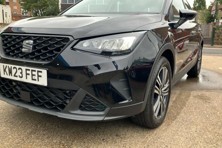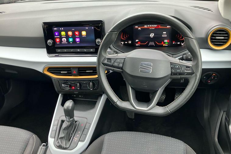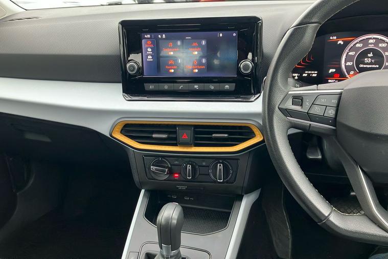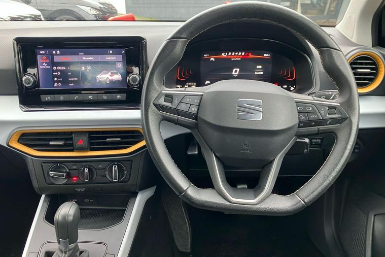 Introducing this stylish 2021 SEAT Arona in eye-catching Midnight Black metallic, offering a superb combination of practicality and comfort. Registered in August 2023 and previously owned by one keeper, this five-door SUV is equipped with an efficient petrol engine and smooth automatic transmission, providing a confident drive and impressive fuel economy with a combined 47.9 mpg. With seating for five, a generous 400-litre boot, and compact dimensions for easy urban driving, it’s well suited to both city commutes and family getaways. The interior stands out with a colourful air vent accent and a digital cockpit, making every journey enjoyable. Enhanced by 17-inch dynamic alloy wheels and a contrasting roof, this Arona delivers a modern presence on the road. This vehicle meets current emissions standards and is ULEZ compliant, allowing worry-free driving in Ultra Low Emission Zones.