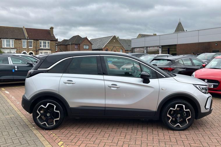 Introducing the Vauxhall Crossland Ultimate, finished in striking two-coat metallic Crystal Silver with a sleek black roof. Registered in 2024 and previously owned by one keeper, this practical SUV offers room for five and generous boot capacity—410 litres with the seats up and up to 1, 255 litres when folded. Its 1.2 turbo petrol engine delivers a smooth automatic drive, achieving up to 44.8 mpg combined. Experience confident performance with 128 hp, a top speed of 123 mph, and 0-62 mph acceleration in 9.9 seconds. The Crossland Ultimate stands out with features such as advanced park assist, a panoramic rear-view camera, navigation and infotainment with an 8 touchscreen, and ergonomic AGR-approved front seats. This model is ULEZ compliant, making it ideal for driving in low-emission zones. Combining style, safety, and modern convenience, the Crossland Ultimate is ready for your everyday journeys.