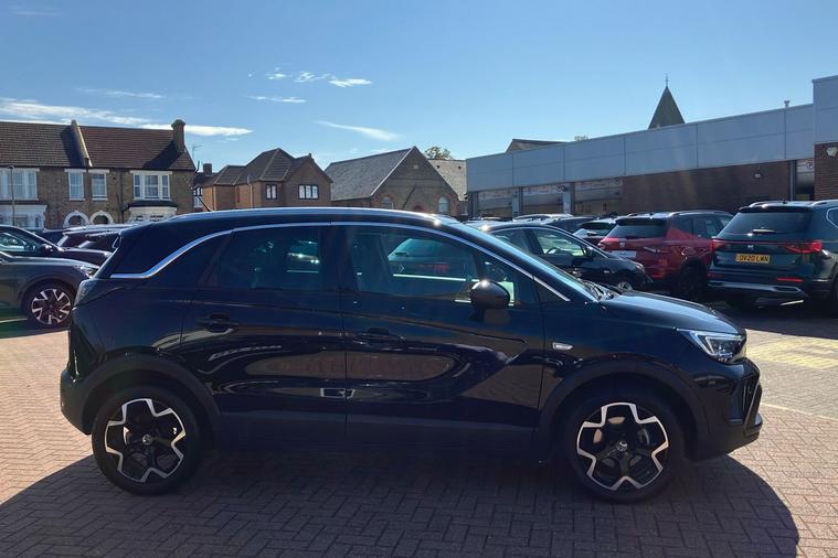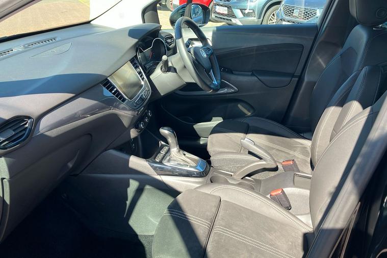 Introducing the Vauxhall Crossland Ultimate in striking two-coat metallic Carbon Black. This used SUV, first registered in August 2024 and with just one previous keeper, brings together impressive practicality and contemporary style. Its automatic transmission and smooth front wheel drive deliver a balanced drive, while the 1.2-litre turbocharged engine offers up to 44.8 mpg combined. The Crossland provides generous space, with a versatile boot expanding from 410 to 1, 255 litres, and seats five comfortably. With an acceleration of 0 to 62 mph in 9.9 seconds and a top speed of 123 mph, it offers both efficiency and performance. Features including advanced park assist, panoramic rear view camera, and dual zone climate control enhance every journey. The Crossland Ultimate is also ULEZ compliant, making it ideal for driving in low emission zones. Experience modern motoring with this eye-catching and well-equipped Vauxhall SUV.
