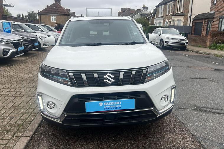 Presenting a used Suzuki Vitara SZ5 in classic white, first registered in April 2022. This efficient hybrid SUV delivers a combined 53.2 mpg, making it an economical choice for city and motorway driving alike. With seating for five and a versatile boot offering up to 642 litres of space, it’s ideal for both daily use and family adventures. The 1.5 petrol hybrid engine provides up to 113 horsepower, with a top speed of 111 mph. Safety and convenience are well catered for, including handy features such as a panoramic sunroof, navigation system, rear parking camera, adaptive cruise control, and blind spot monitor. With only one previous keeper, this Suzuki Vitara offers reliability and modern comfort. Fully ULEZ compliant, it’s ready for worry-free driving in and around London’s Ultra Low Emission Zone.