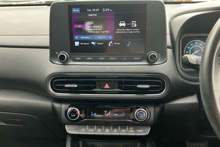 Introducing this used 2020 Hyundai Kona SE Connect Hybrid in striking Special Pearl Phantom Black with a sophisticated pearlescent finish. Registered in May 2022 and previously owned by just one keeper, this stylish SUV offers a smooth drive with an automatic transmission and is powered by a petrol hybrid engine, delivering up to 57.6 mpg combined. Enjoy the comfort of spacious seating for five, generous boot space, and the practicality of five doors. Perfect for longer journeys, the Kona offers a refined experience with a top speed of 100 mph. Designed for everyday versatility, its modern aesthetic is matched by thoughtful touches throughout the interior and exterior. This model meets Euro 6 emissions standards, making it ULEZ compliant and ready for driving in low-emission zones. Experience a blend of efficiency, style, and reliability in this popular family SUV.