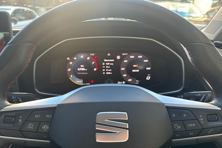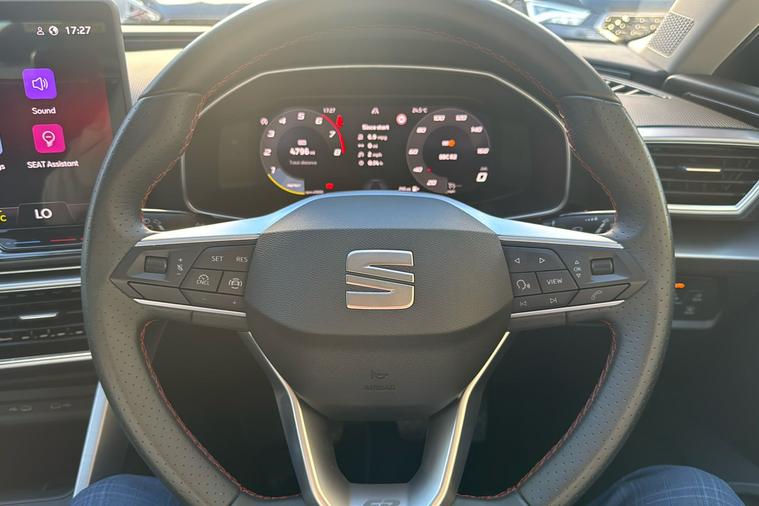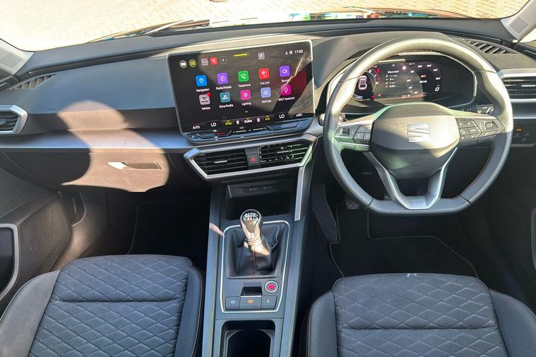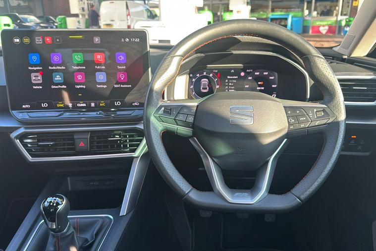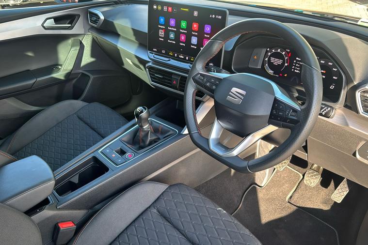 Experience the dynamic drive of the 2024 SEAT Leon FR Hatchback, presented in sophisticated Metallic Phantom Black. Combining smart style with everyday practicality, this used model offers a five-door layout and spacious interior, making it suitable for both city commutes and family journeys. Powered by a responsive 1.5-litre petrol engine paired with a manual gearbox, the Leon FR delivers up to 49.6 mpg on combined journeys and reaches a top speed of 122 mph. There’s generous room on board thanks to five seats and a 380-litre boot capacity. With just one previous keeper, this car is in great condition and fully Euro 6 compliant, making it ready for Ultra Low Emission Zone (ULEZ) driving. In addition, thoughtful design touches throughout provide added comfort and convenience, ensuring each trip is enjoyable for drivers and passengers alike.
