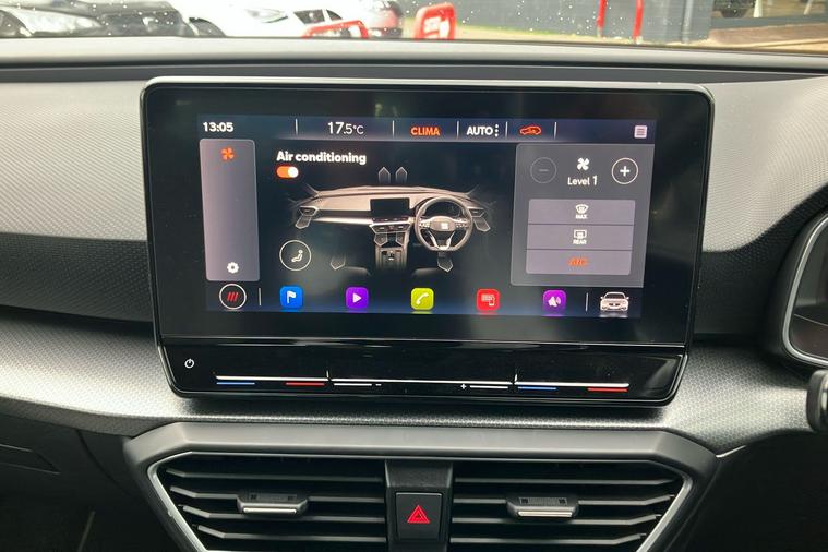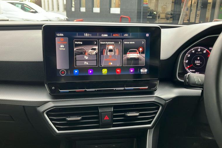 Experience the versatility and style of the SEAT Leon SE Dynamic, finished in striking black. Registered in September 2021, this five-door hatchback offers generous practicality with comfortable seating for five and a spacious 380-litre boot. Enjoy a smooth drive with a responsive manual gearbox and impressive fuel efficiency, achieving a combined 49.6 miles per gallon. The 1.5-litre petrol engine delivers 128 horsepower and a top speed of 129 mph. This vehicle is ULEZ compliant, making it ideal for city journeys without the worry of extra charges. Inside, youll find thoughtful details including a digital cockpit, media system with navigation, three-zone climate control, and wireless smartphone integration. Features such as dark tinted rear windows and a leather flat-bottomed steering wheel add a refined touch. The SEAT Leon SE Dynamic pairs smart design with everyday comfort, making it an excellent choice for both urban and motorway drives.