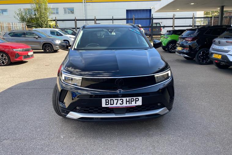 Presenting a 2021 Vauxhall Grandland Ultimate finished in striking Carbon Black metallic. This used SUV offers a refined and spacious interior with room for five passengers and generous boot capacity of up to 1, 652 litres, making it a great option for families or those needing extra space. Powered by a 1.2-litre turbocharged petrol engine delivering 128 hp, it offers an engaging drive and a combined fuel efficiency of 46.3 mpg. The manual transmission provides added control and connection to the road, while features such as 19-inch diamond-cut alloy wheels and advanced IntelliLux LED headlights enhance both style and visibility. With practical touches like a power tailgate with foot sensor and a 360-degree panoramic parking camera, daily journeys are made easier. Capable of reaching up to 122 mph and accelerating from 0-62 mph in 10.4 seconds, this Grandland balances comfort with performance.