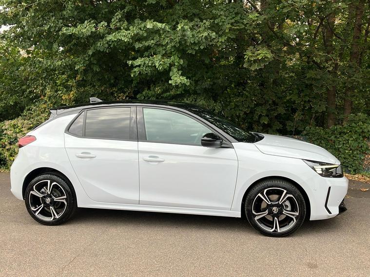 Experience modern style and practicality with this used 2025 Vauxhall Corsa Ultimate. Finished in a crisp white, it stands out with diamond-cut 17-inch alloy wheels, dark tinted rear windows, and sleek black detailing across the roof and pillars. The spacious five-door hatchback design makes it ideal for everyday journeys, while the 309-litre boot accommodates your needs, expanding to 1, 118 litres when required. Enjoy refined comfort with heated front seats, massage function and lumbar support for the driver, a panoramic rear-view camera, and advanced driver assistance features for a safer drive. Cruise through city streets or down the motorway with its efficient 1.2 turbo petrol engine producing 99 horsepower and a top speed of 120 mph, yet still offering impressive combined fuel economy of 52.3 mpg. This Corsa meets Euro 6 emissions standards, so you can benefit from ULEZ compliance wherever you go. Previously enjoyed by one careful owner.
