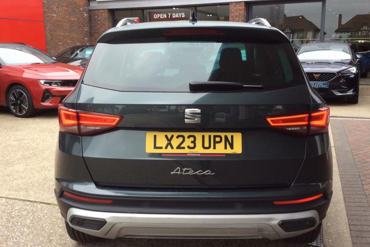 Presented in a striking green finish, this used SEAT Ateca Xperience from 2023 brings a fresh and stylish presence to the road. Its SUV design combines modern looks with practical proportions, comfortably seating five with plenty of space for passengers and 510 litres of boot capacity for luggage. Powered by a 1.5-litre petrol engine, it delivers up to 43.5 mpg combined and achieves a top speed of 126 mph, all through a manual gearbox for those who love a more engaged driving experience. Youll enjoy the added sophistication of features such as multi-coloured ambient lighting, 18-inch alloy wheels, chrome detailing, dark tinted rear windows, park assist, a rear view camera, navigation system, and wireless phone charging. This model is ULEZ compliant, making it ideal for driving in ultra-low emission zones without compromise. An excellent choice for those seeking both style and practicality.