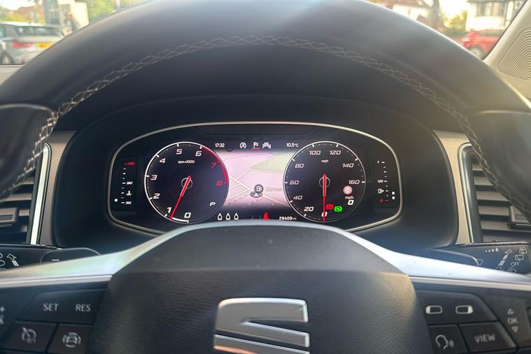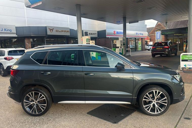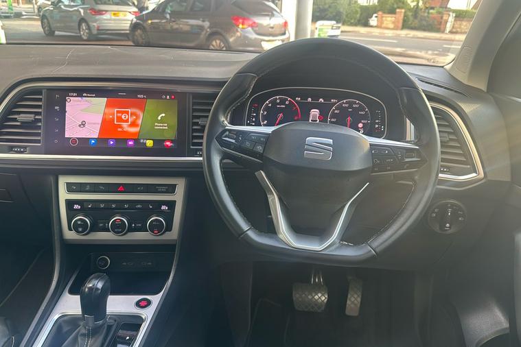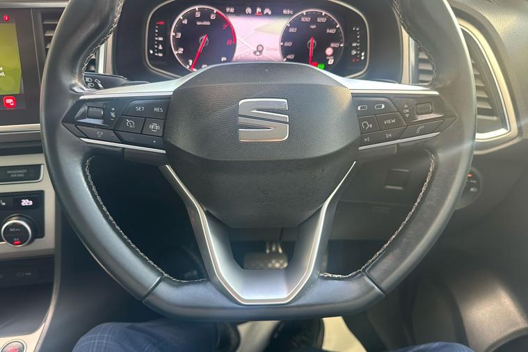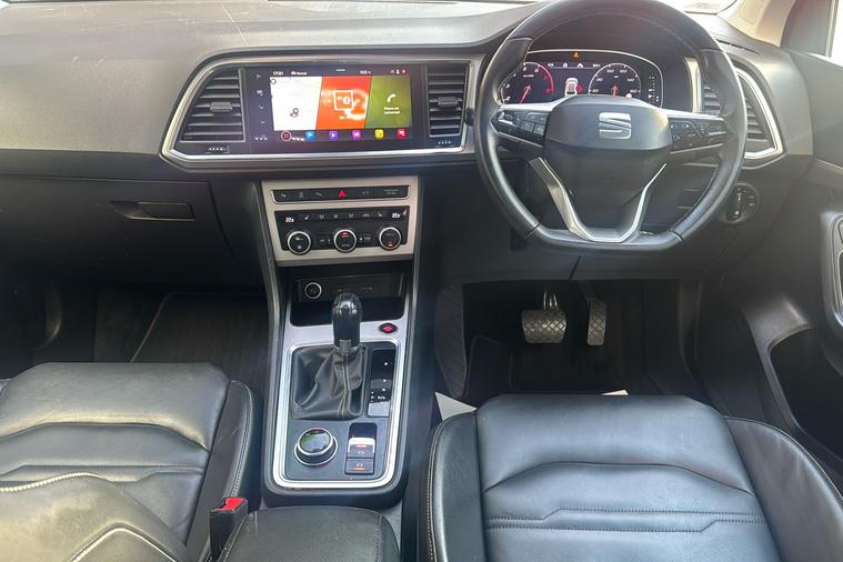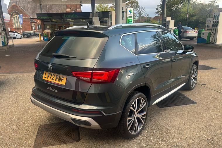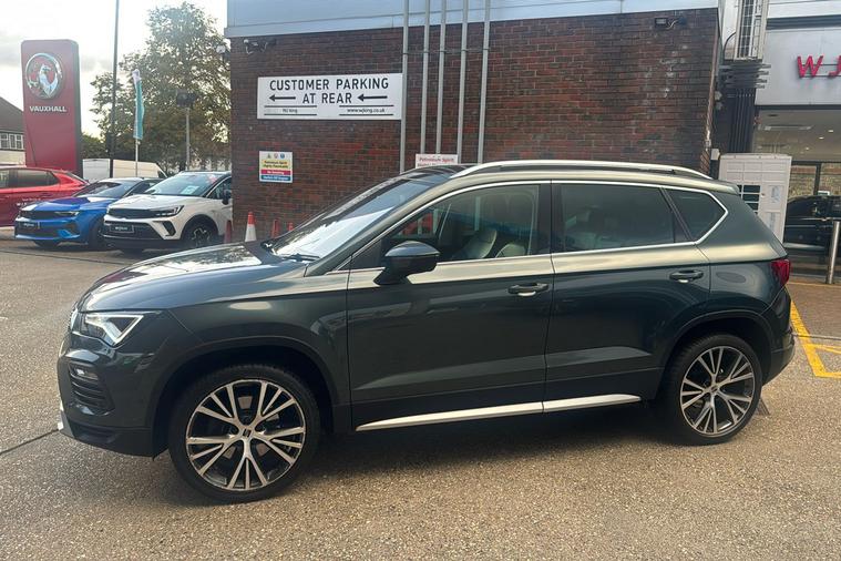 Experience the SEAT Ateca Xperience Lux, an eye-catching SUV finished in an elegant green. First registered in October 2022, this used model blends practicality with a refined design. The Ateca offers generous space for five passengers and features a roomy 510-litre boot, making it ideal for families or active lifestyles. Powered by a 1.5-litre petrol engine and automatic gearbox, it delivers a smooth drive with 148hp and a top speed of 126 mph, while offering an impressive combined fuel economy of 42.2 mpg. The Xperience Lux trim enhances every journey with features including heated front seats, a premium navigation system, ambient multicolour interior lighting, and a rear view camera. Additional highlights include 19-inch alloy wheels and an electric tailgate with virtual pedal for added convenience. Not only stylish but also practical, the Ateca is ULEZ compliant for city driving peace of mind.