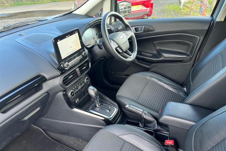 Discover this exceptional 2018 Ford EcoSport T Titanium, boasting remarkably low mileage of just 15, 853 miles for its age, a truly standout feature. This Euro 6 compliant model is powered by an efficient 1.0L petrol engine and comes with a clear vehicle history check, offering peace of mind. Inside, youll find the convenient Ford Navigation System with Ford SYNC 3, fully equipped with Apple CarPlay and Android Auto for seamless smartphone integration, alongside Bluetooth connectivity. Driving is made easier with automatic headlights and a rear view camera complemented by rear parking sensors, while the electronic automatic temperature control ensures a comfortable cabin environment.This Ford EcoSport Titanium excels with its impressive fuel economy, achieving an outstanding 46 miles per gallon, which indicates its superior efficiency compared to many other vehicles in its class. The inclusion of Apple CarPlay and Android Auto, alongside the integrated navigation system, highlights its advanced technology offering, making journeys more connected and enjoyable. Furthermore, the combination of automatic headlights and rear parking aids demonstrates a thoughtful approach to driver convenience and safety, setting this EcoSport apart.