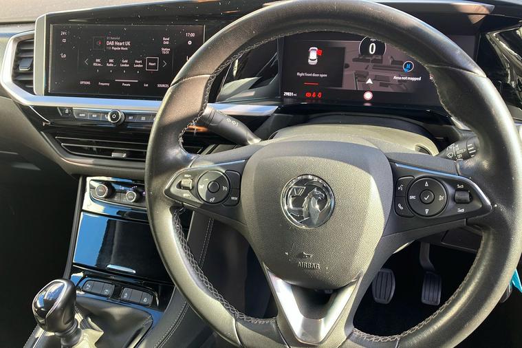 Introducing the 2021 Vauxhall Grandland Gs Line, a stylish and practical used SUV in an eye-catching grey finish. Its turbocharged 1.2 petrol engine offers a balance of performance and efficiency, achieving up to 46.3 mpg combined. The manual transmission and front wheel drive provide a confident driving experience, with 0-62 mph in 10.4 seconds and a top speed of 122 mph. Inside, you’ll find seating for five and an impressively flexible boot, providing up to 1, 652 litres of space when needed. This Grandland stands out with high gloss black 18-inch alloy wheels, dark tinted rear windows, and a contrasting black roof. Navigation is made simple with the integrated satellite system, while parking is aided by a 180-degree rear-view camera. Practical touches include split-folding rear seats and a spacious, carpeted luggage area. Best of all, this car is ULEZ compliant, making it ideal for city life.