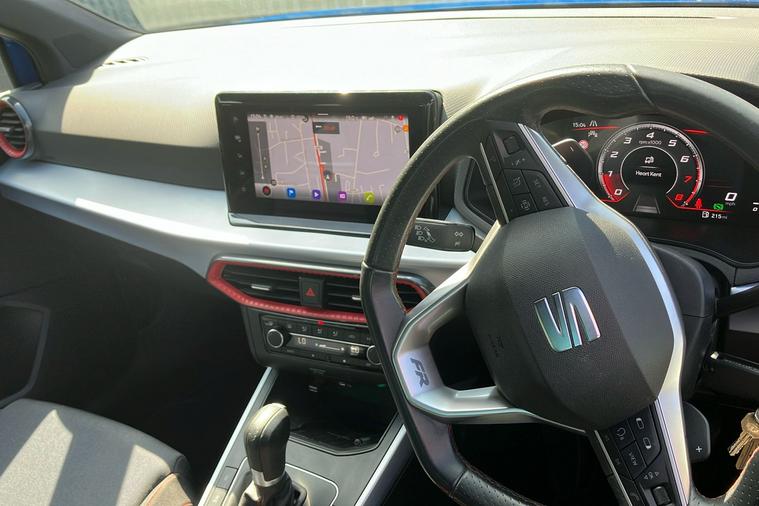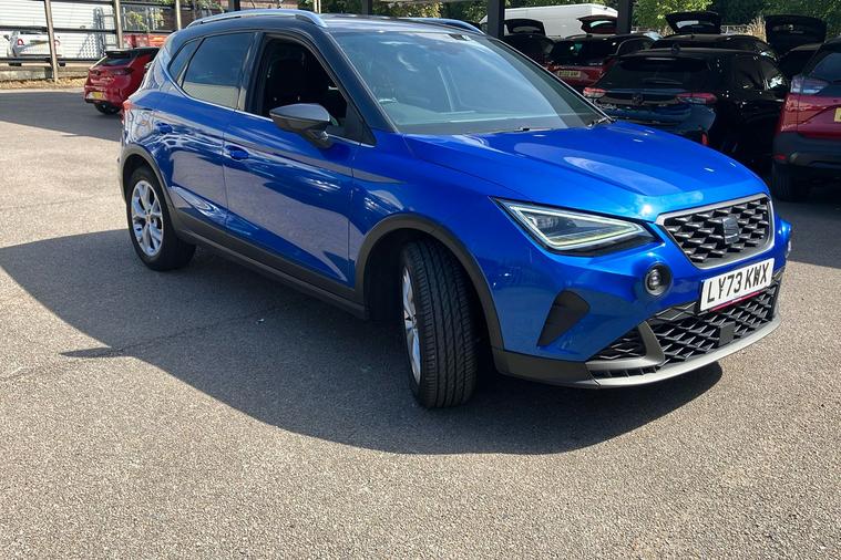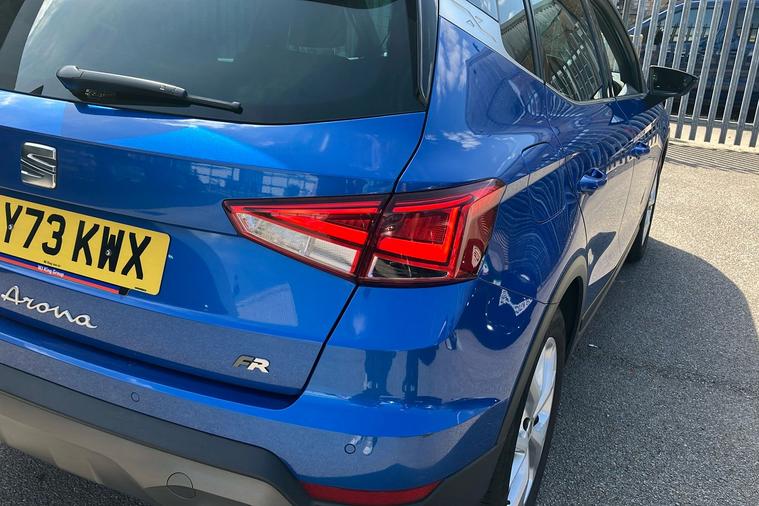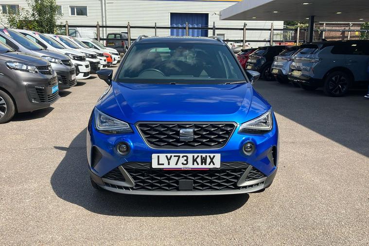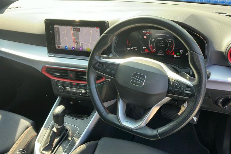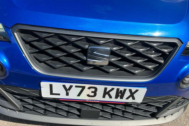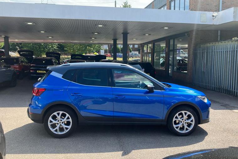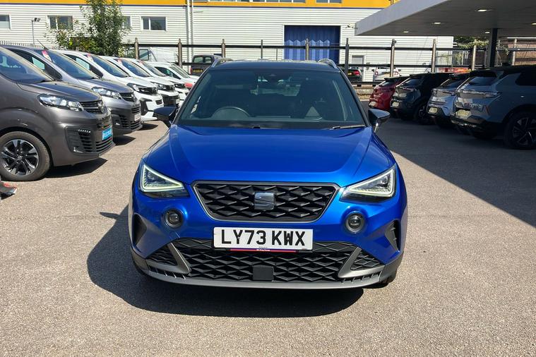Introducing the SEAT Arona FR SUV, a used demonstrator offering an exciting blend of style and efficiency. This vehicle features a sleek metallic sapphire blue exterior with a contrasting grey roof, making it a standout on the road. With a fuel-efficient petrol engine, the Arona offers an impressive combined fuel economy of 47.9 mpg, ensuring you spend more time driving and less at the pump. Perfect for city and countryside adventures alike, this SUV provides ample room with a spacious 400-litre boot and seating for five passengers. The Arona also boasts a top speed of 118 mph, delivering a dynamic driving experience. It is ULEZ compliant, allowing you to travel into low-emission zones without any worries. Experience the perfect combination of practicality and performance with the SEAT Arona FR, ready to elevate every journey.
