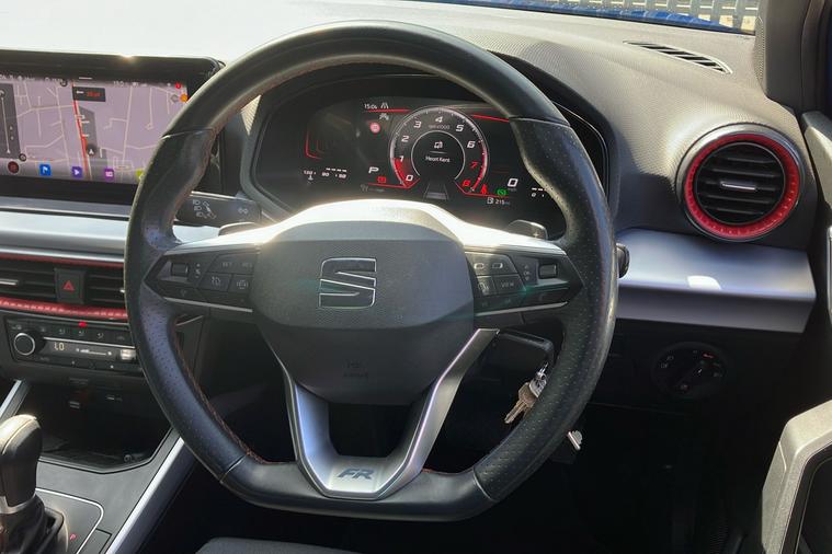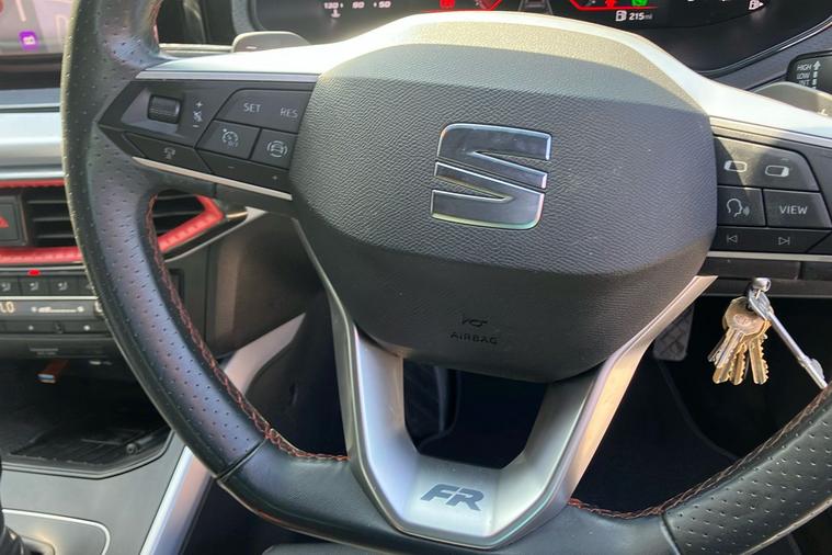 - Perforated Leather Flat-Bottomed Steering Wheel with Red Stitching and FR Logo with Leather Gear Knob and Handbrake