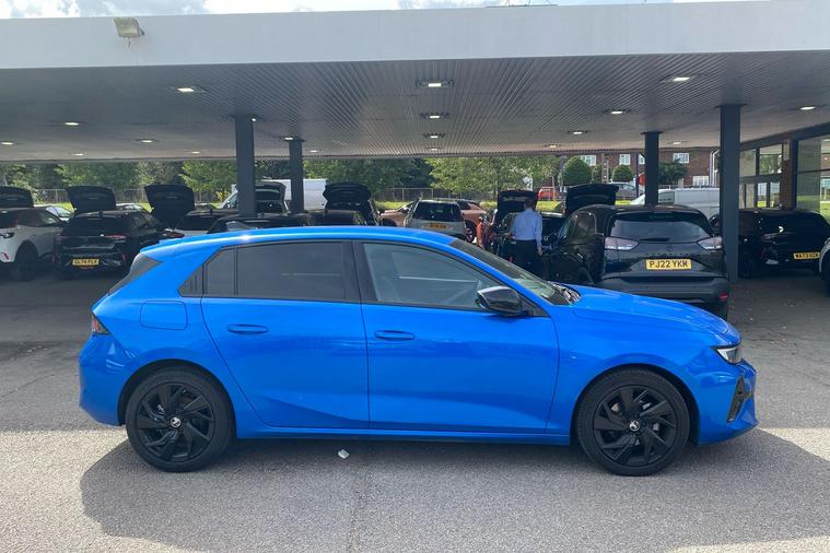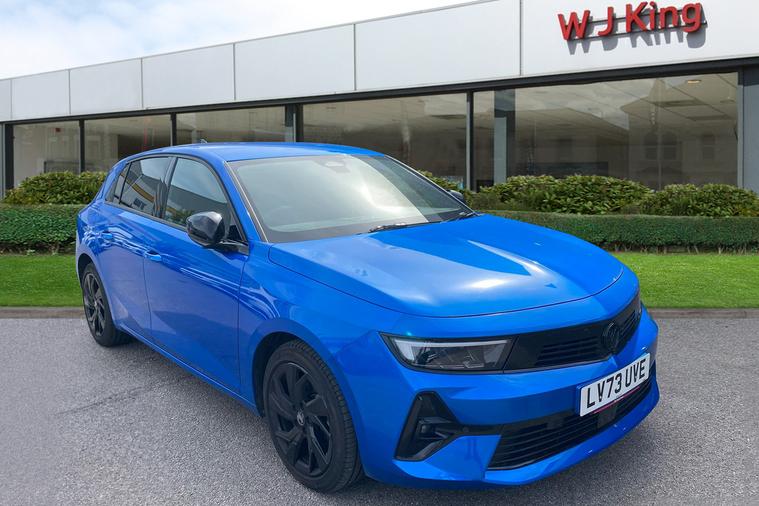 Supplied and serviced by us from new this Astra is a credit to its former owner. Discover the Vauxhall Astra Gs Hatchback in striking Cobalt Blue, registered in September 2023 and offering a refined balance of style and practicality. This used, automatic petrol model combines impressive efficiency with up to 49.6 mpg (combined) and smooth front wheel drive. Enjoy a spirited drive with 128 horsepower, reaching up to 130 mph. Comfortably seating five with five doors, this hatchback offers ample space, with a generous 422 litres of boot capacity. Inside, high-quality features such as ambient lighting with eight colour choices, heated front seats, and a heated steering wheel add a touch of luxury. Convenient features like keyless entry and start, a panoramic parking camera, and adaptive cruise control make every journey relaxed. Enjoy a modern look enhanced by 17-inch black alloy wheels and stylish body-coloured touches. Most importantly, this Vauxhall Astra is ULEZ compliant, making it a smart choice for city driving.