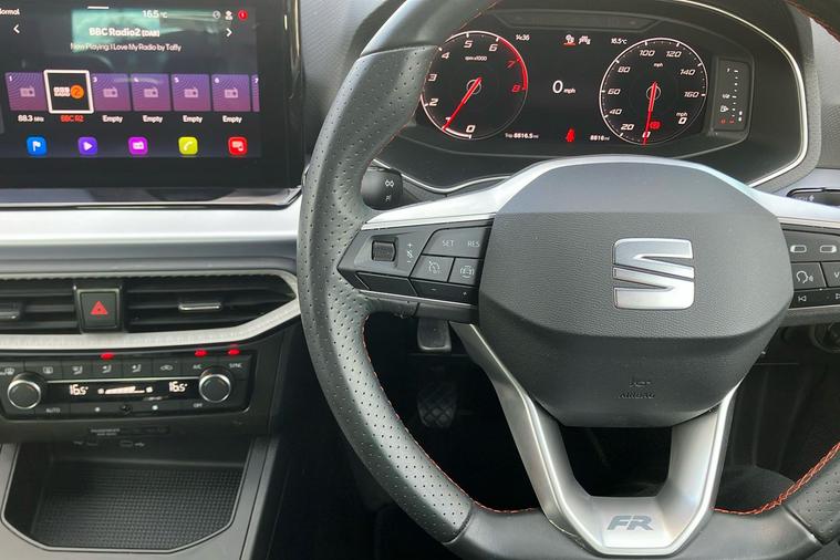 Presenting the 2021 SEAT Ibiza FR Sport in striking grey, a used yet superbly maintained hatchback. Combining head-turning looks with genuine practicality, this five-door model offers space for five and a versatile 355-litre boot. The lively 1.0 petrol engine boasts 108 horsepower, delivering an engaging drive with a maximum speed of 121 mph and an impressive combined fuel efficiency of 52.3 mpg. Highlights include bold 18-inch performance alloy wheels, a vivid 9.2-inch navigation system, a digital cockpit, and distinctive FR exterior styling. Comfort is enhanced with dual zone climate control, sports suspension, and stylish interior ambience. Always connected, the Ibiza features smartphone integration, Bluetooth audio, and ambient lighting. Safety comes first with multiple airbags, lane assist, and advanced stability control. As a Euro 6 petrol vehicle, it meets ULEZ requirements, making it ideal for city life and beyond.