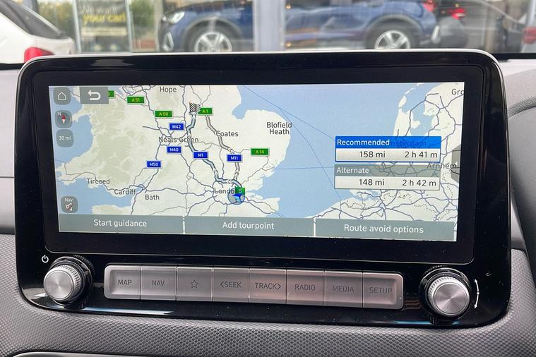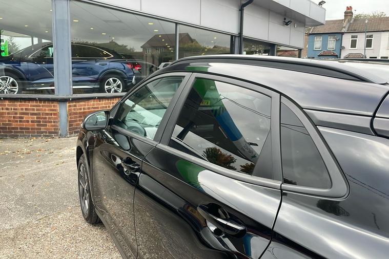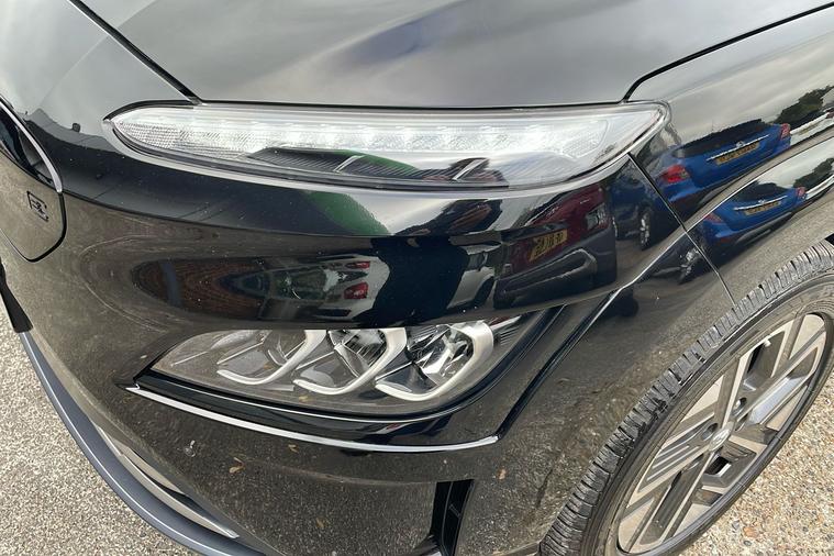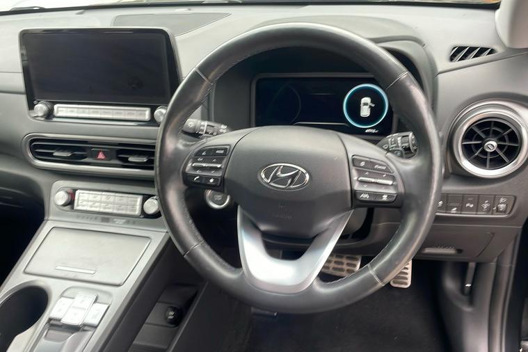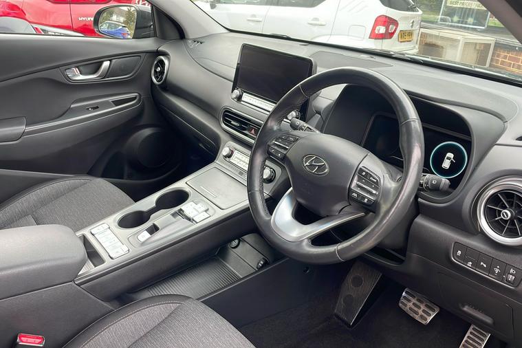 Experience eco-friendly driving with this used Hyundai Kona Premium, finished in striking Metallic Phantom Black. Powered by a fully electric 67.5kWh battery, it offers an impressive electric range of up to 300 miles on a single charge. Ideal for the city and longer journeys alike, its automatic transmission and front wheel drive deliver a smooth, responsive ride. This SUV provides ample space for passengers and luggage, with a spacious boot and five-seat configuration. Notable highlights include a 10.25-inch widescreen navigation system, heated front seats, a premium audio system, and wireless phone charging. The Hyundai Kona combines high comfort and practicality with advanced technology, making every drive more enjoyable. With a top speed of 104mph and stylish alloy wheels, it’s a modern SUV built for today’s roads. This vehicle is ULEZ compliant, making it a smart choice for urban driving. Previously owned by two keepers.