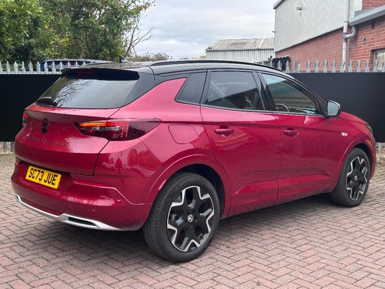 This 2024 Vauxhall Grandland Turbo D Ultimate boasts a full service history, offering peace of mind for its next owner. This Euro 6 compliant diesel model features a 1.5 litre engine and comes equipped with the Ultimate trim level, providing a refined driving experience. Convenience is key with keyless entry and start, allowing you to get going effortlessly. Stay connected and powered up with wireless phone charging, while the 360 degree panoramic parking camera and highway integration assist, including adaptive cruise control, make every journey smoother and safer. The side blind spot alert further enhances your awareness on the road.The Vauxhall Grandland Turbo D Ultimate is designed to impress with its efficiency and practicality. Achieving an impressive 51 miles per gallon, this vehicle offers excellent fuel economy, making it a cost effective choice. Its low CO2 emissions are also a significant benefit, contributing to a lower environmental impact. Furthermore, the Grandland offers substantial boot space, perfect for accommodating luggage or shopping. Its low insurance group rating also indicates that running costs are kept to a minimum, making this a sensible and appealing option for many drivers.