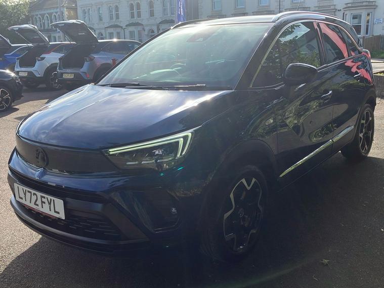 Experience versatility and style with this used Vauxhall Crossland Ultimate, first registered in January 2023. Dressed in an eye-catching metallic navy blue finish, this five-door SUV offers a comfortable and practical drive for both families and professionals alike. Powered by a 1.2 litre petrol engine with manual transmission, it delivers an impressive combined fuel efficiency of 49.6 mpg. Enjoy smooth acceleration from 0 to 62 mph in just 9.5 seconds and a top speed of 125 mph. With seating for five and a generous boot capacity of up to 1, 255 litres, there’s ample space for all your adventures. This model is ULEZ compliant, ensuring confidence for city driving. The Crossland Ultimate combines dynamic looks, thoughtful details and an enjoyable driving experience, making it an excellent choice for those seeking a well-equipped and reliable SUV.